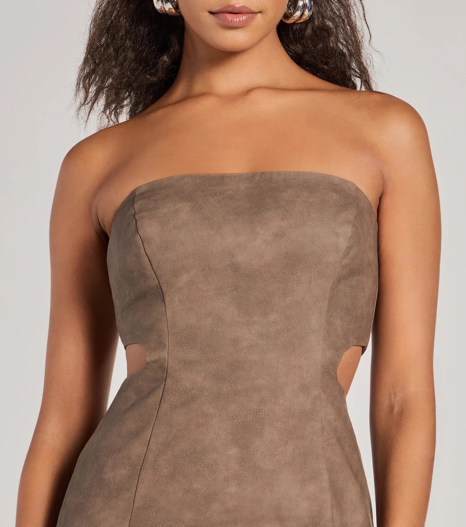 Iconic Allure Faux Leather Strapless Bodycon Mini Dress