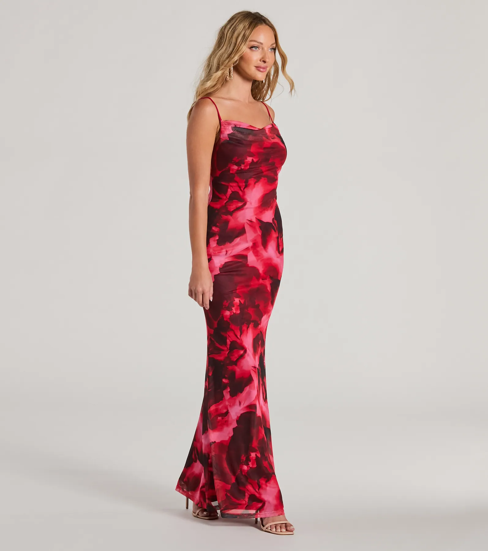 Catch Attention Cowl Neck Abstract Floral Maxi Dress