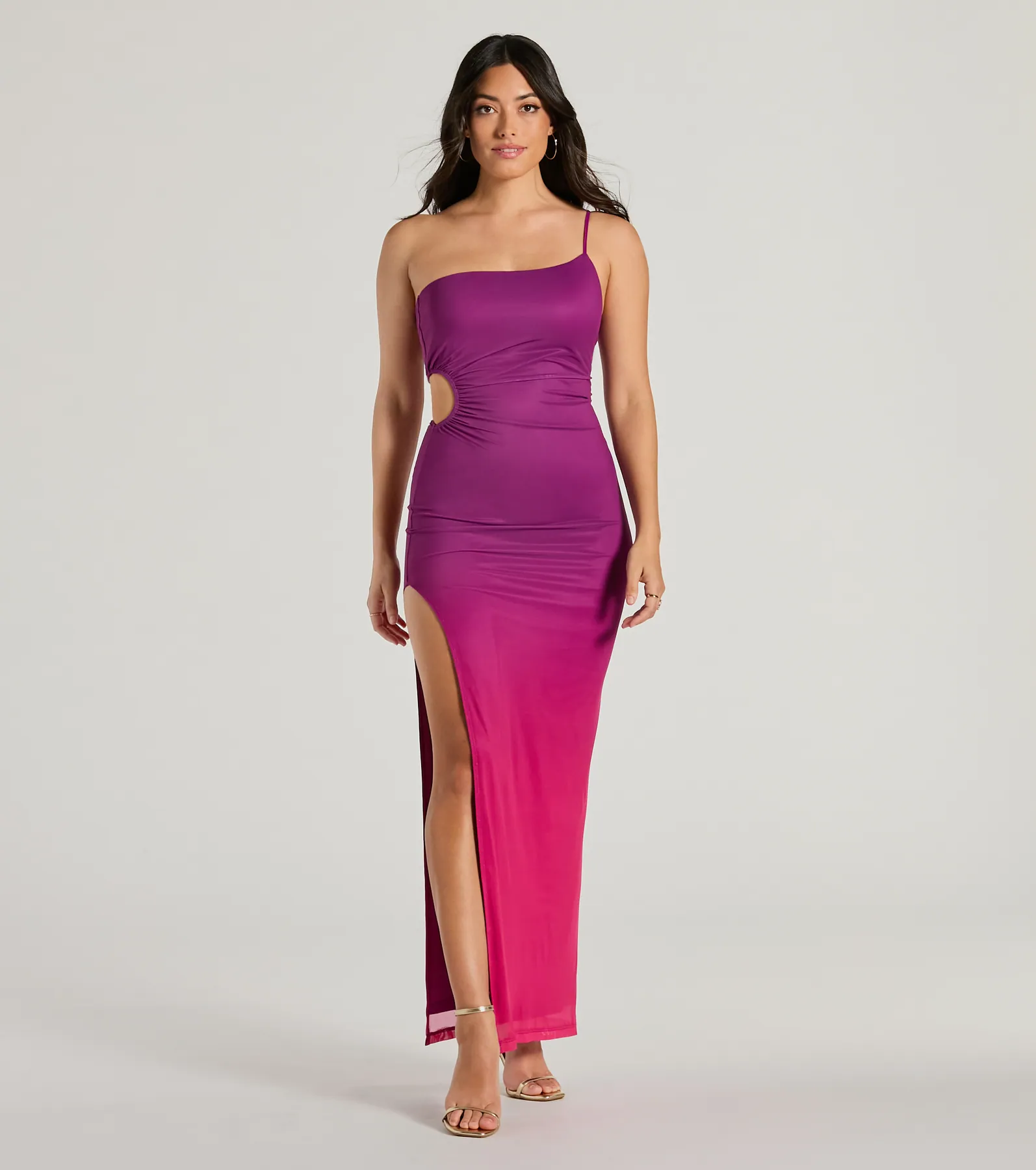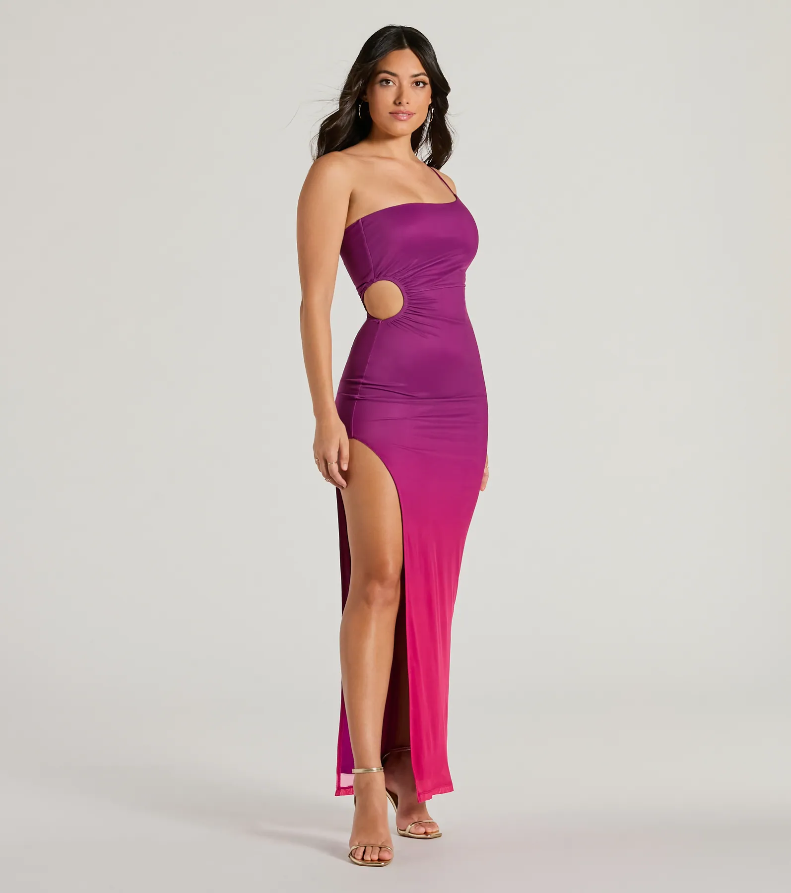 Special Stunner One-Shoulder Cutout Ombre Maxi Dress