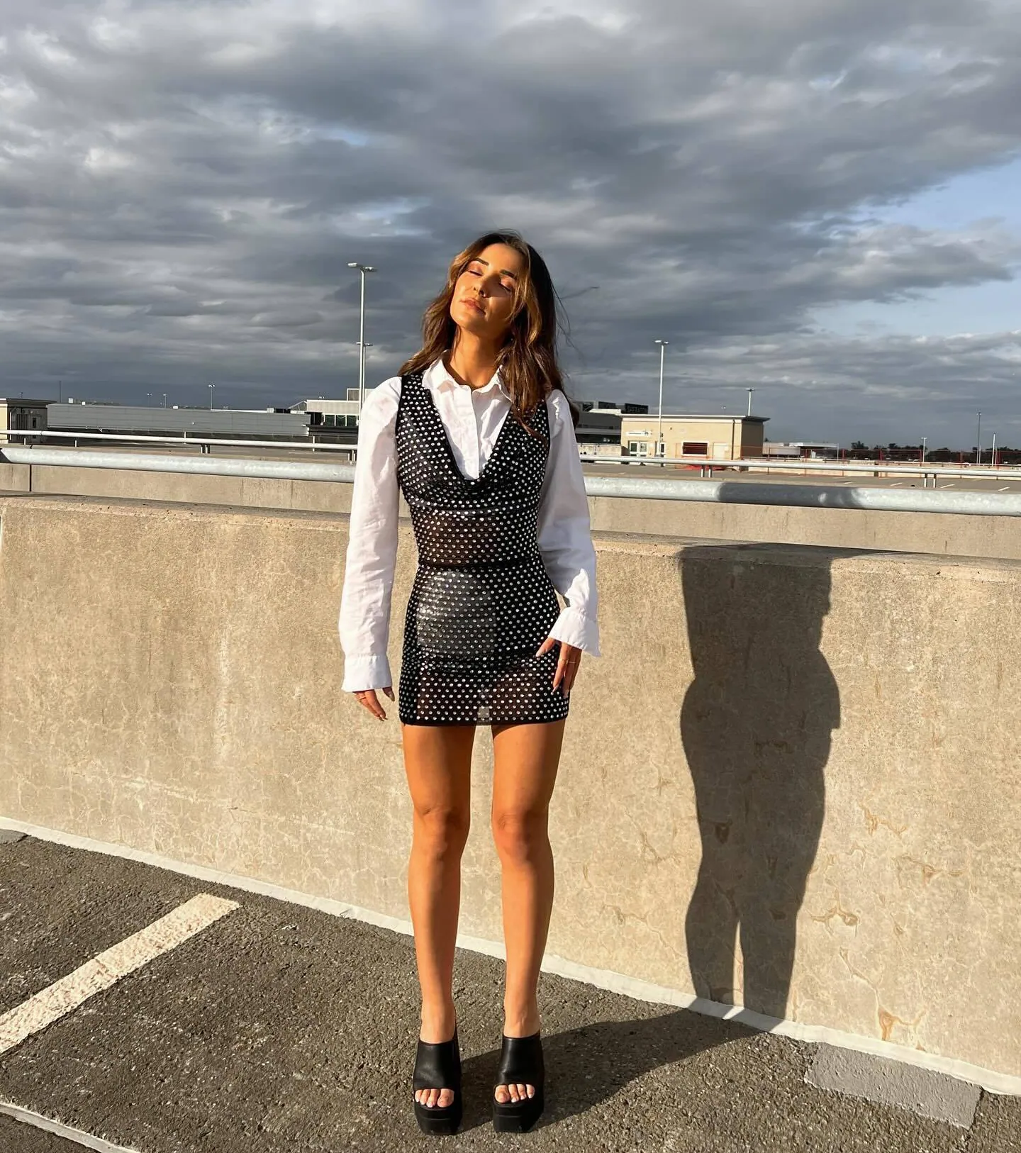 V.I.P Chic Off-The-Shoulder Mesh Mini Dress