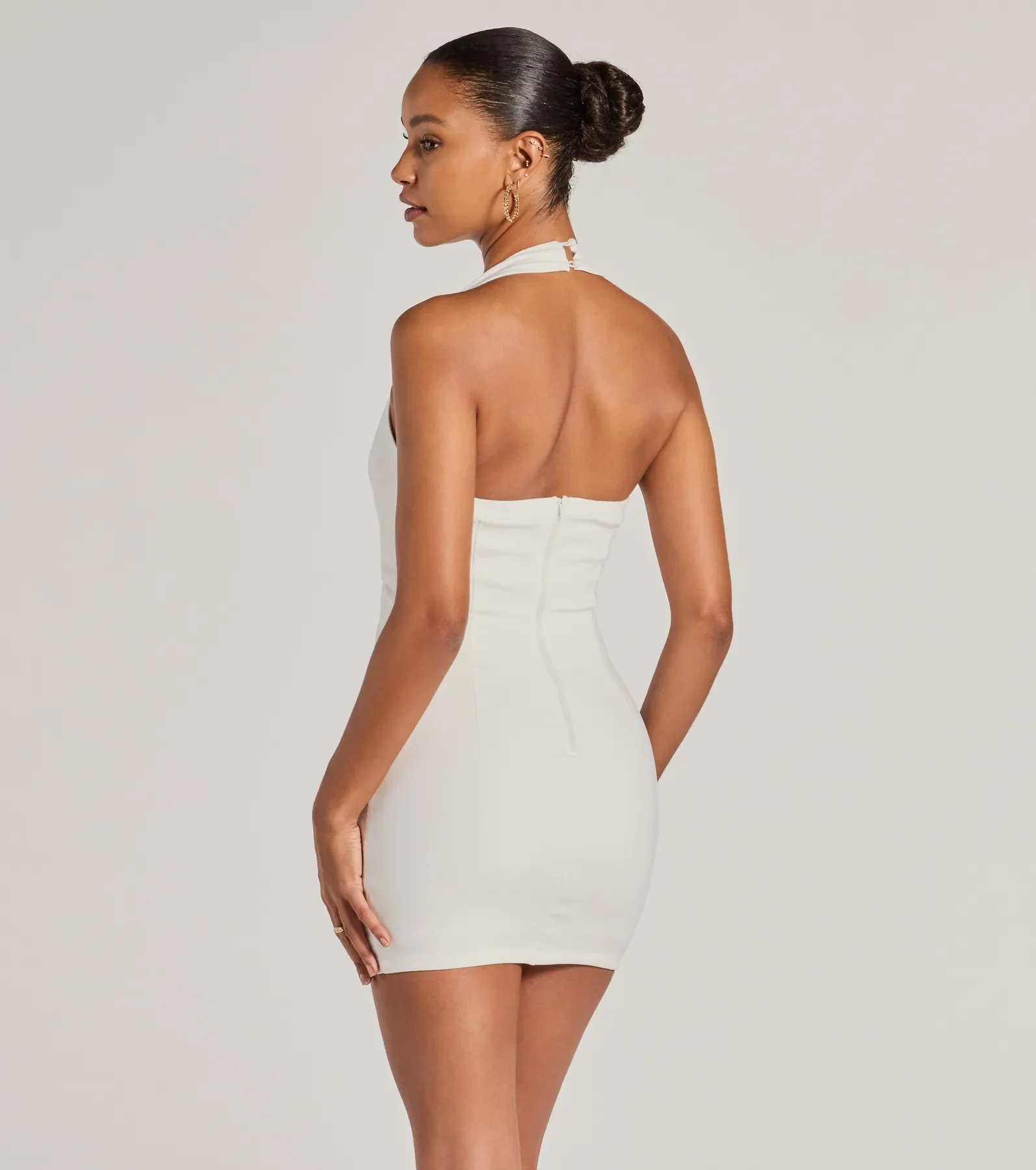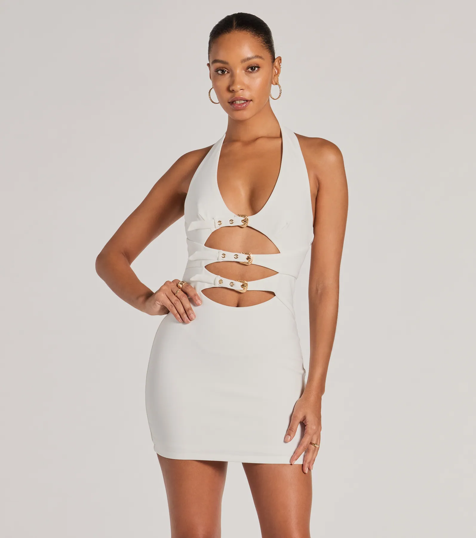 Bold Cutie Halter Buckle Crepe Mini Dress