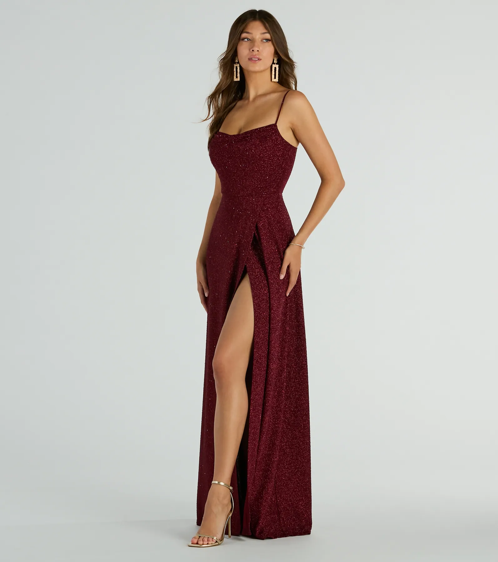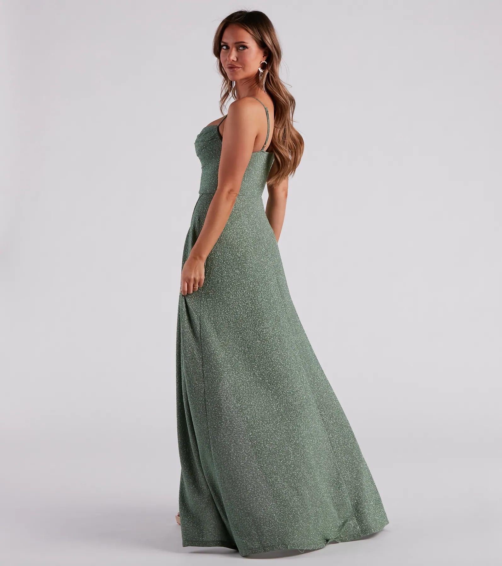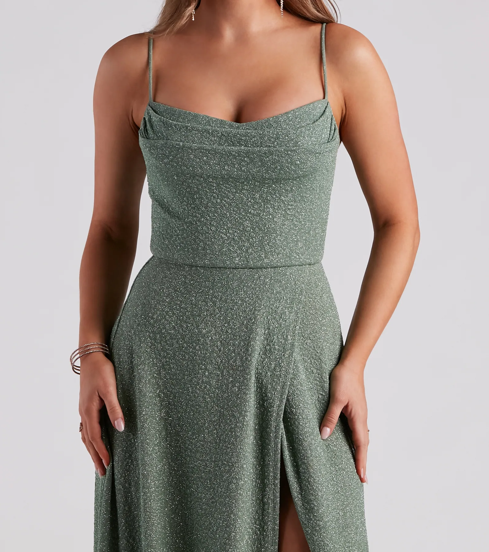 Chelsea Cowl Neck Lace-Up Mermaid Glitter Dress