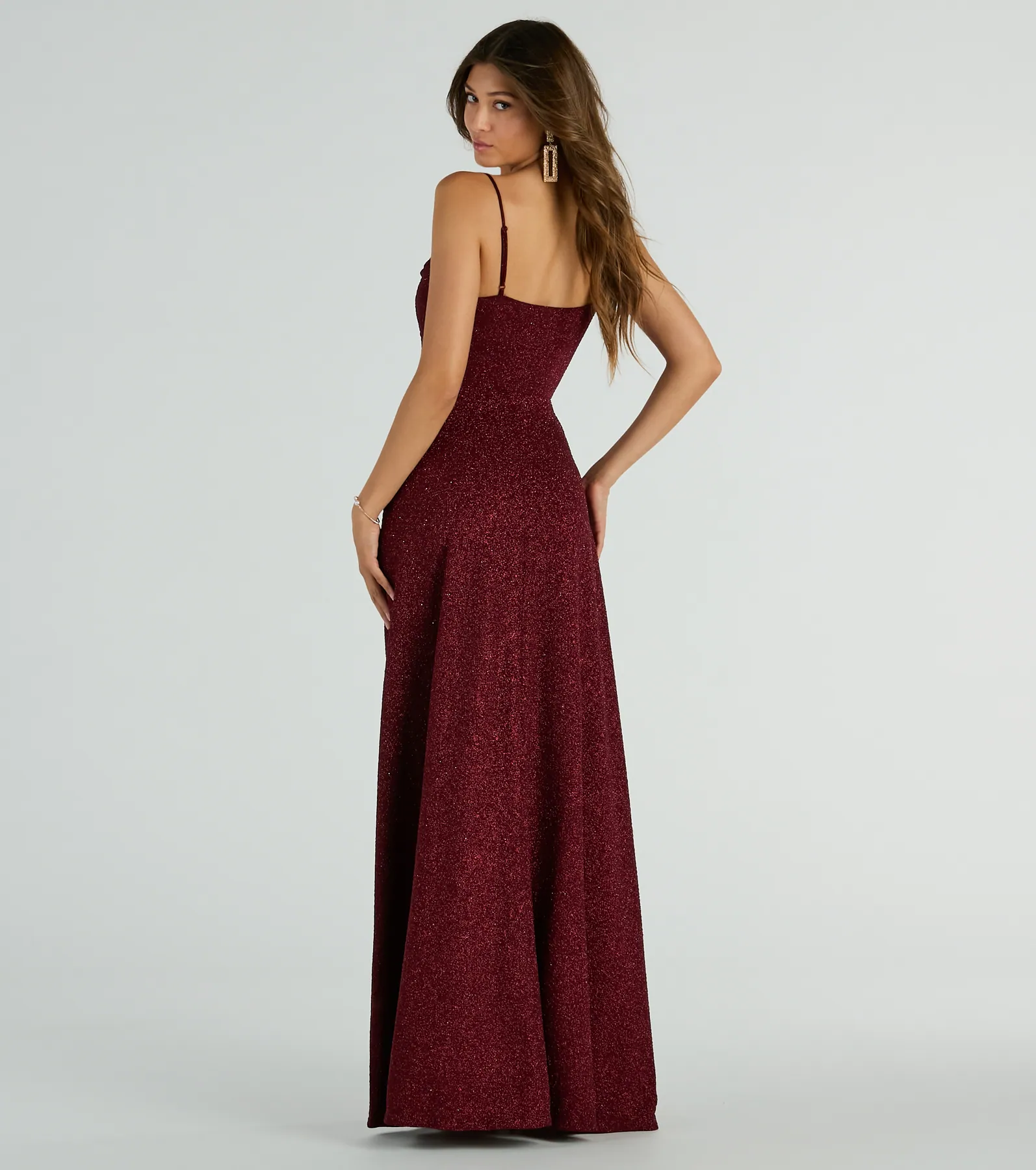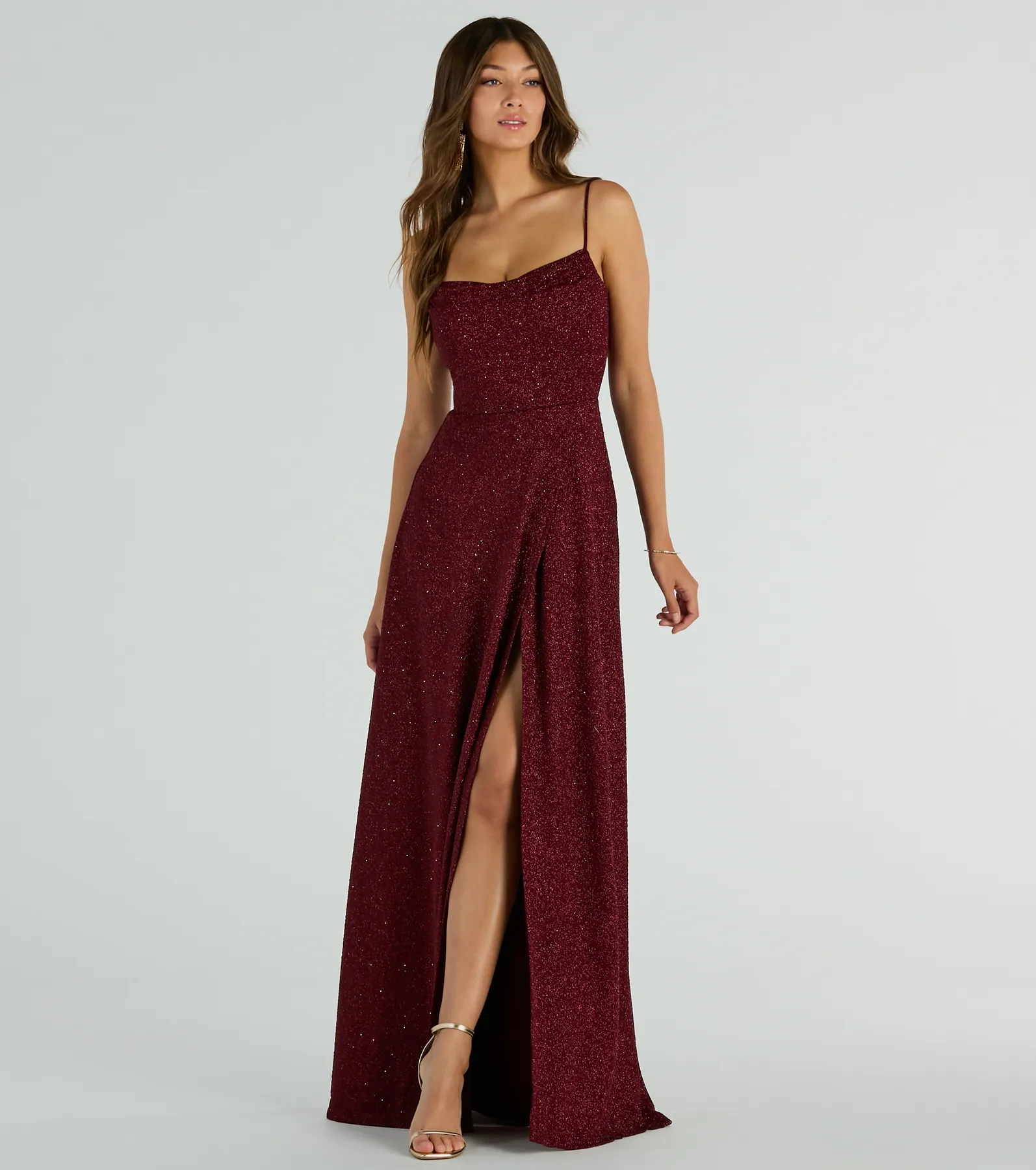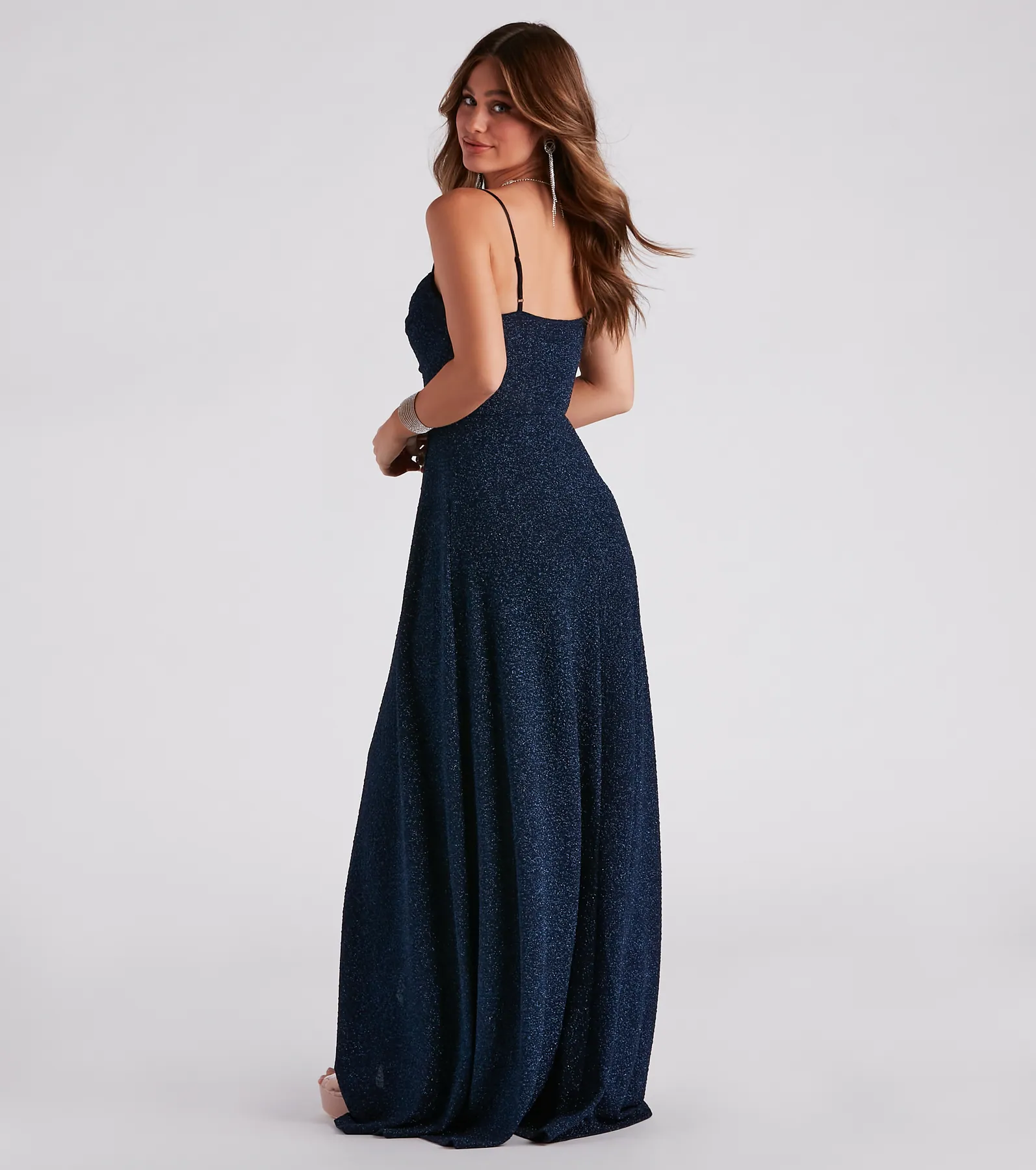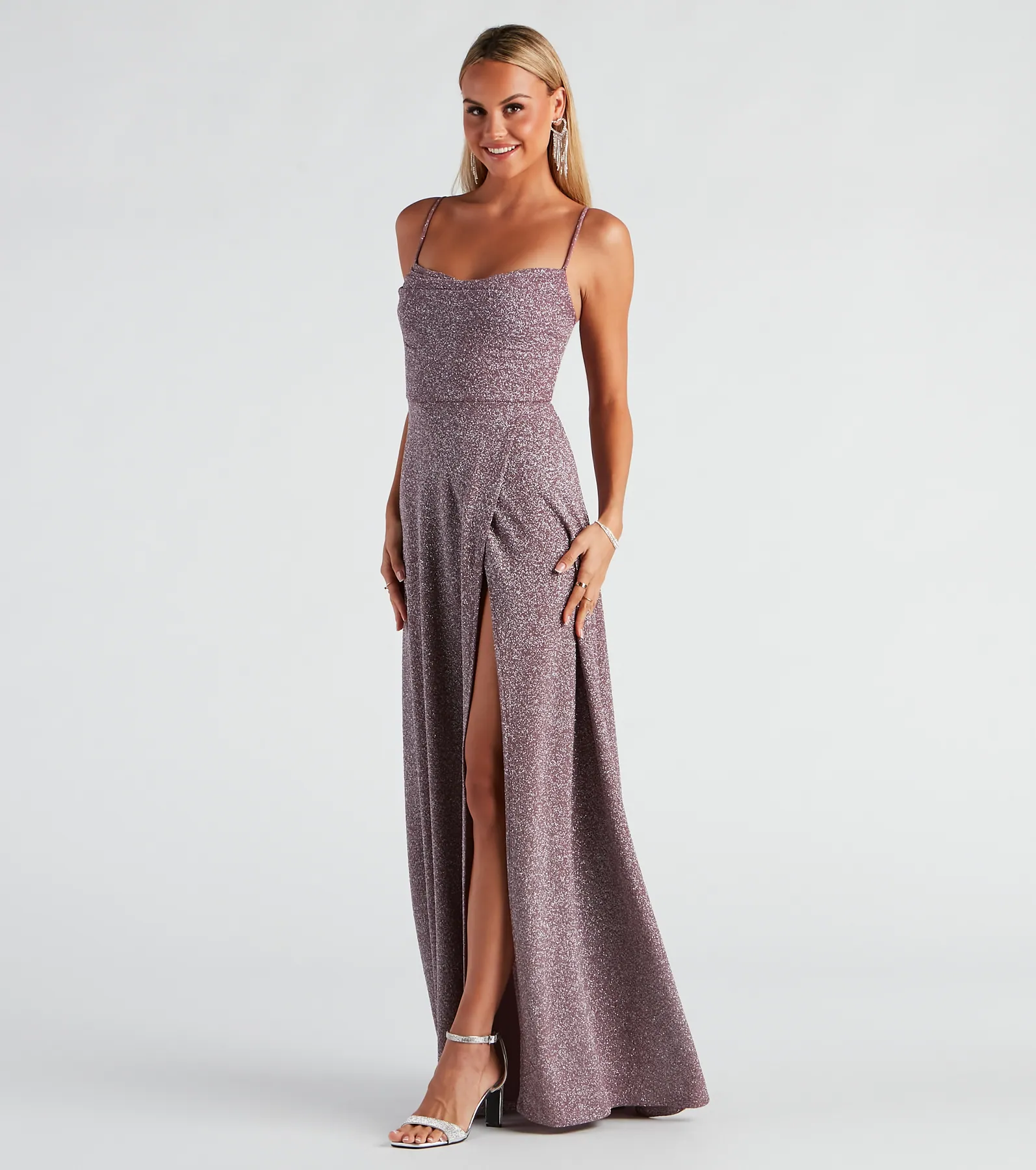 Chelsea Cowl Neck Lace-Up Mermaid Glitter Dress