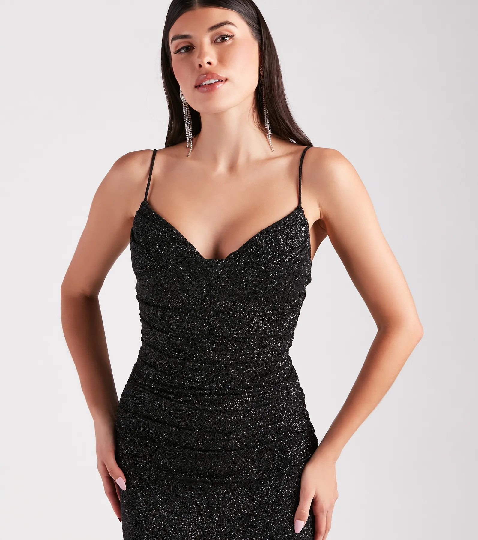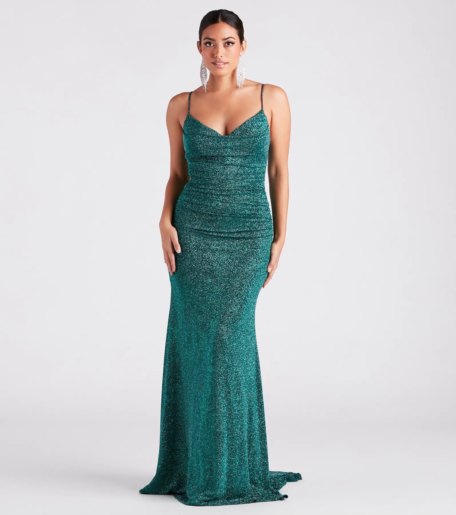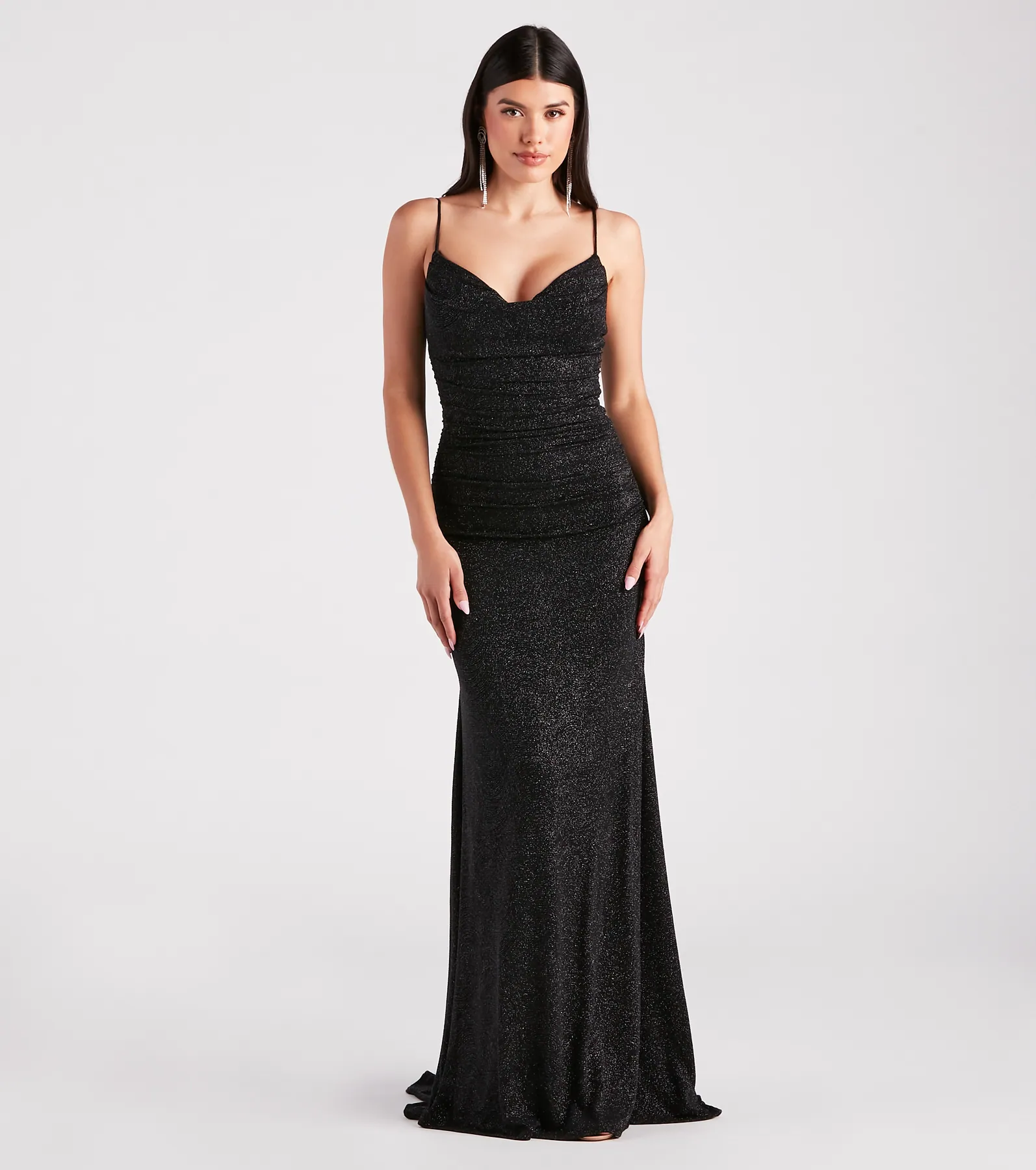 Maxine One-Shoulder Slim Glitter Formal Dress