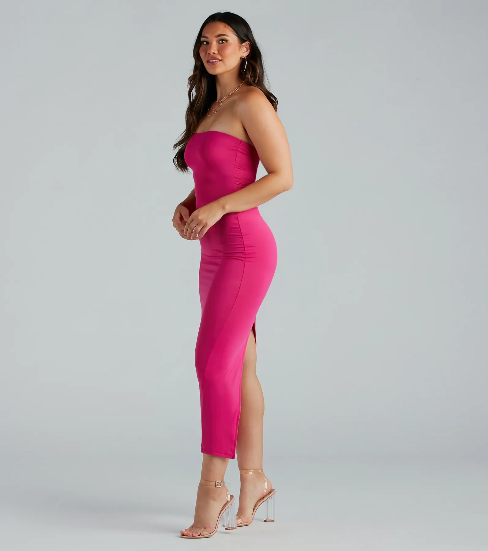Casual Cool Girl High Slit Ribbed Knit Maxi Dress