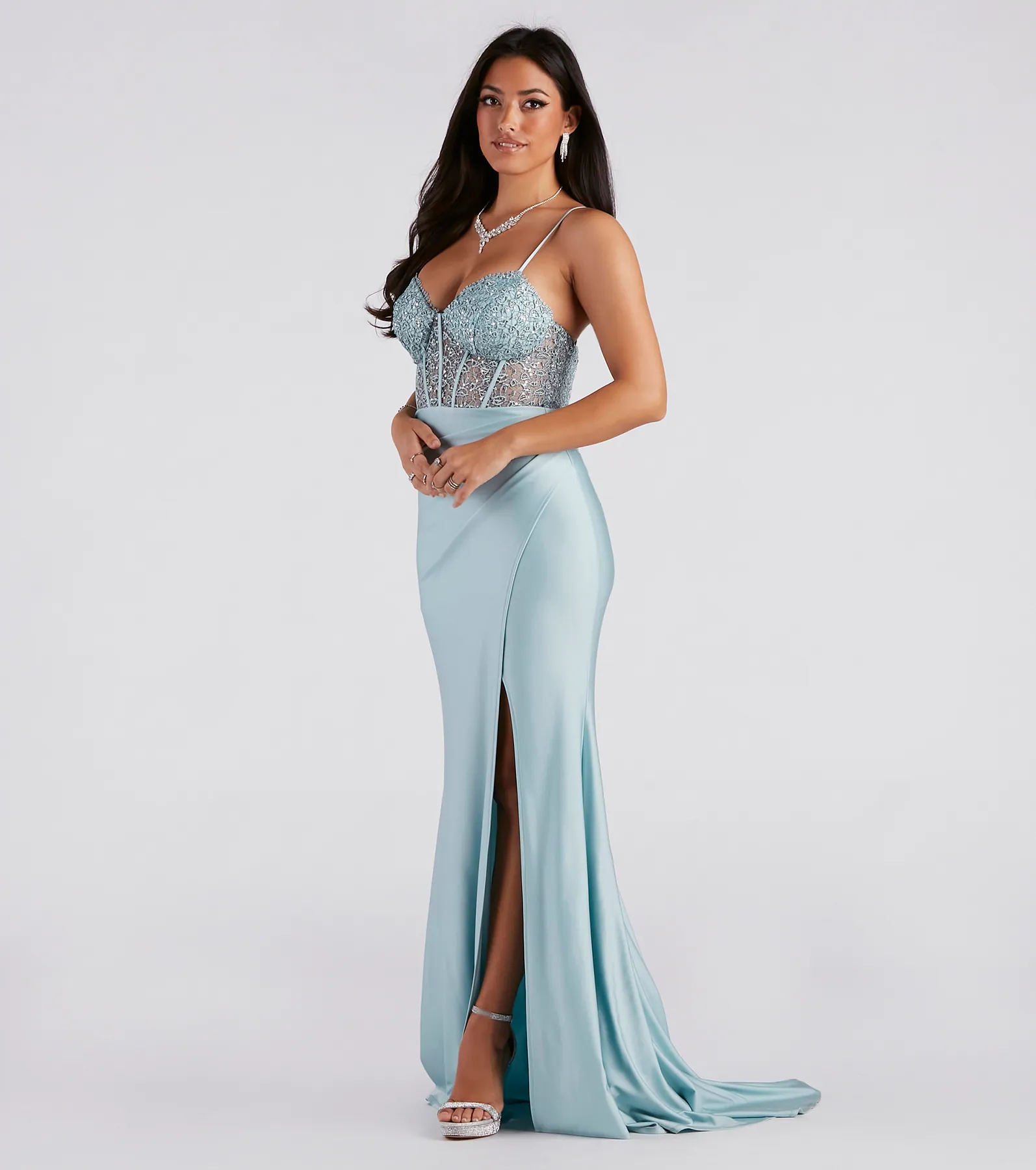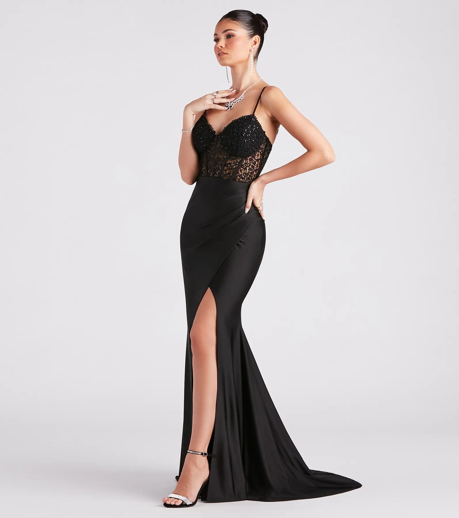 Catherine V-Neck Slit Mermaid Sequin Formal Dress