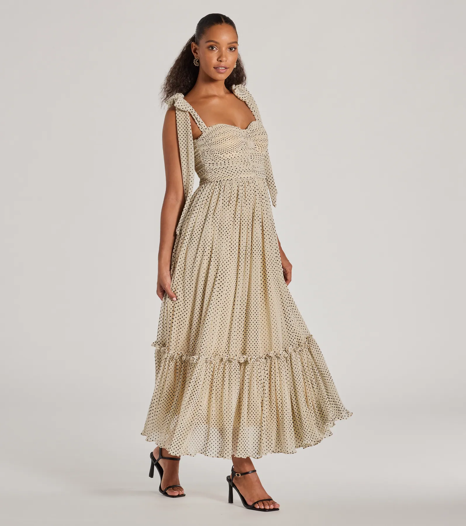 Marnie Sweetheart Tie Strap Polka Dot Formal Midi Dress