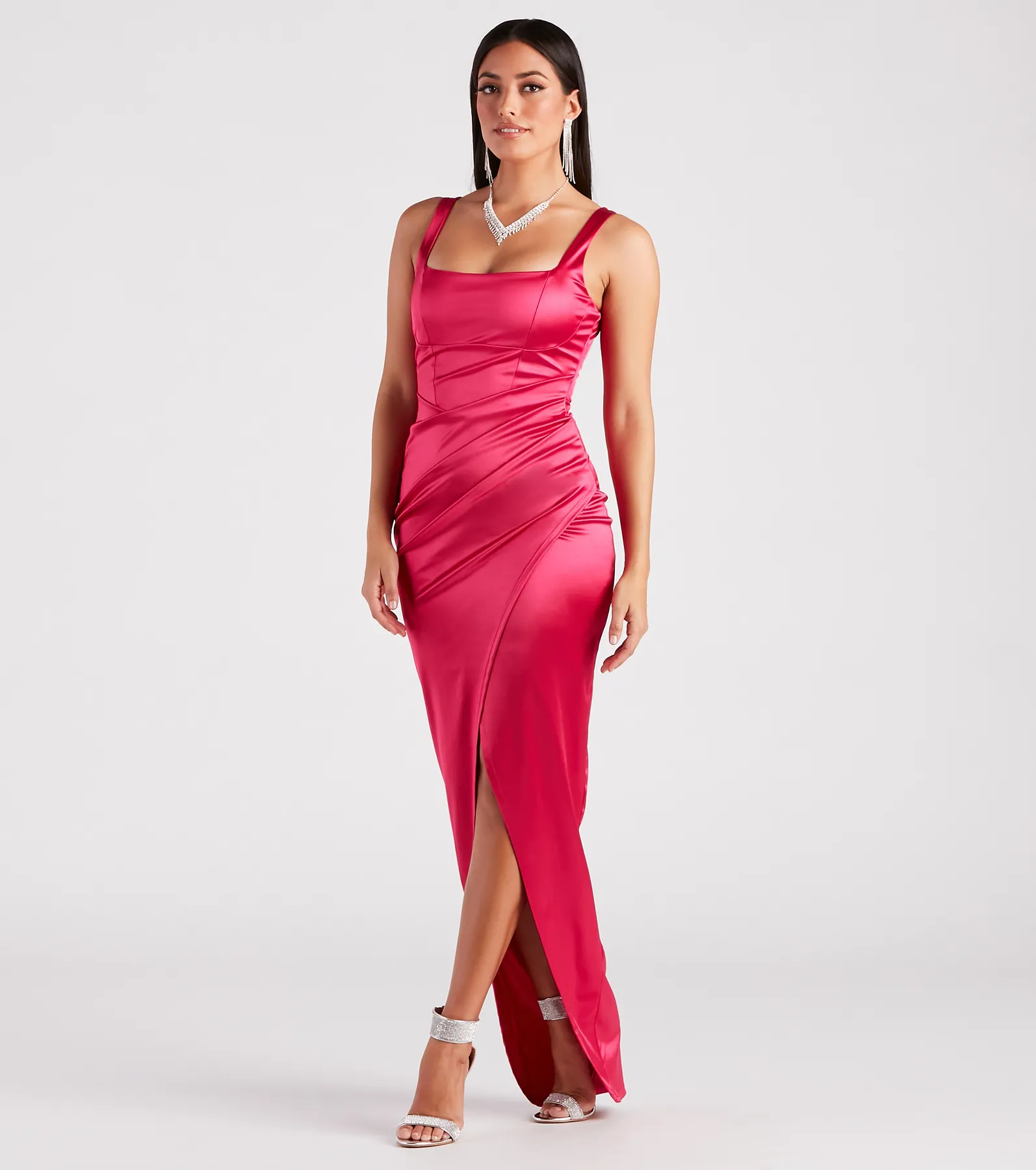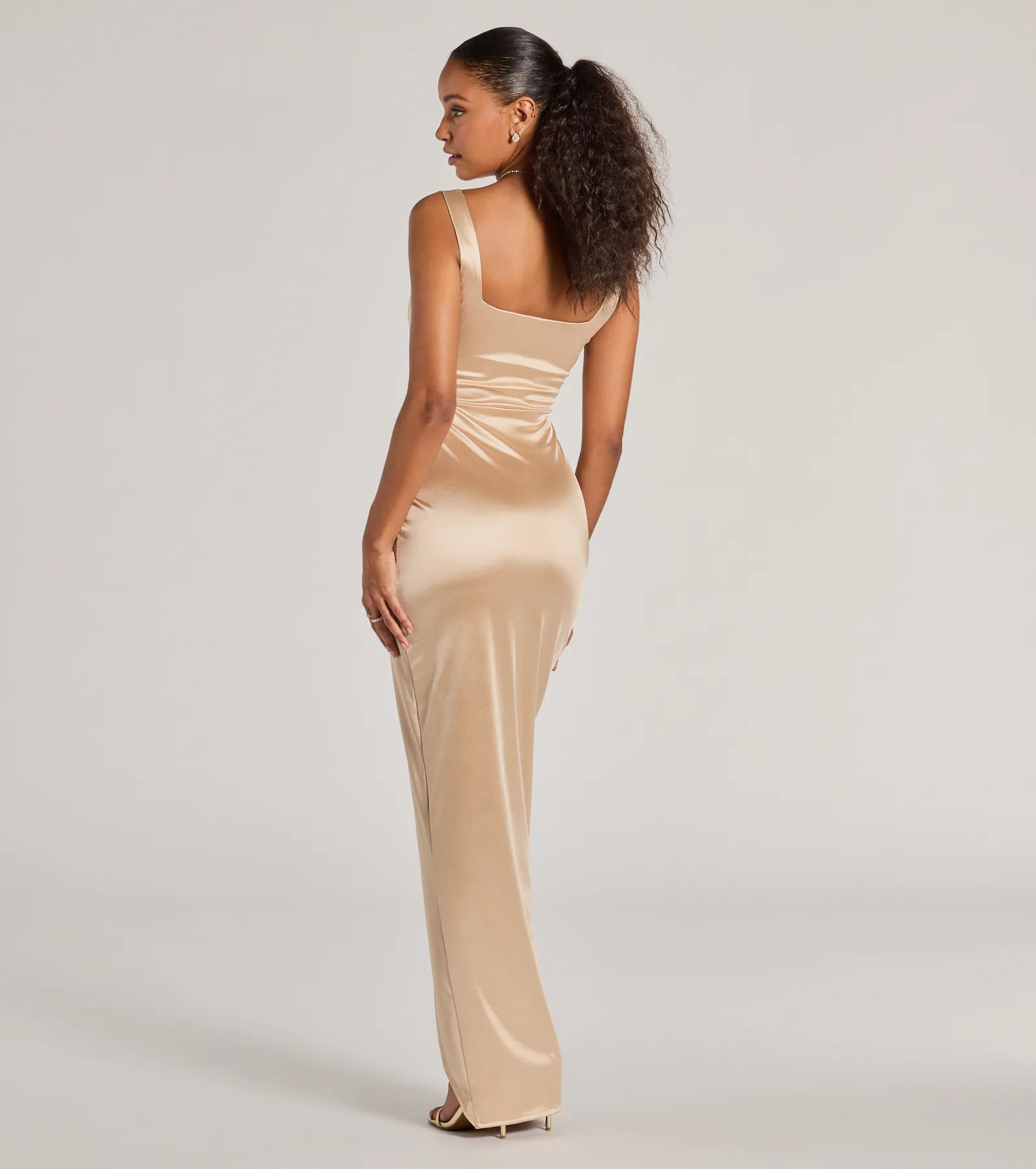Lexie Rhinestone Satin Puff Sleeve Bodycon Mini Dress