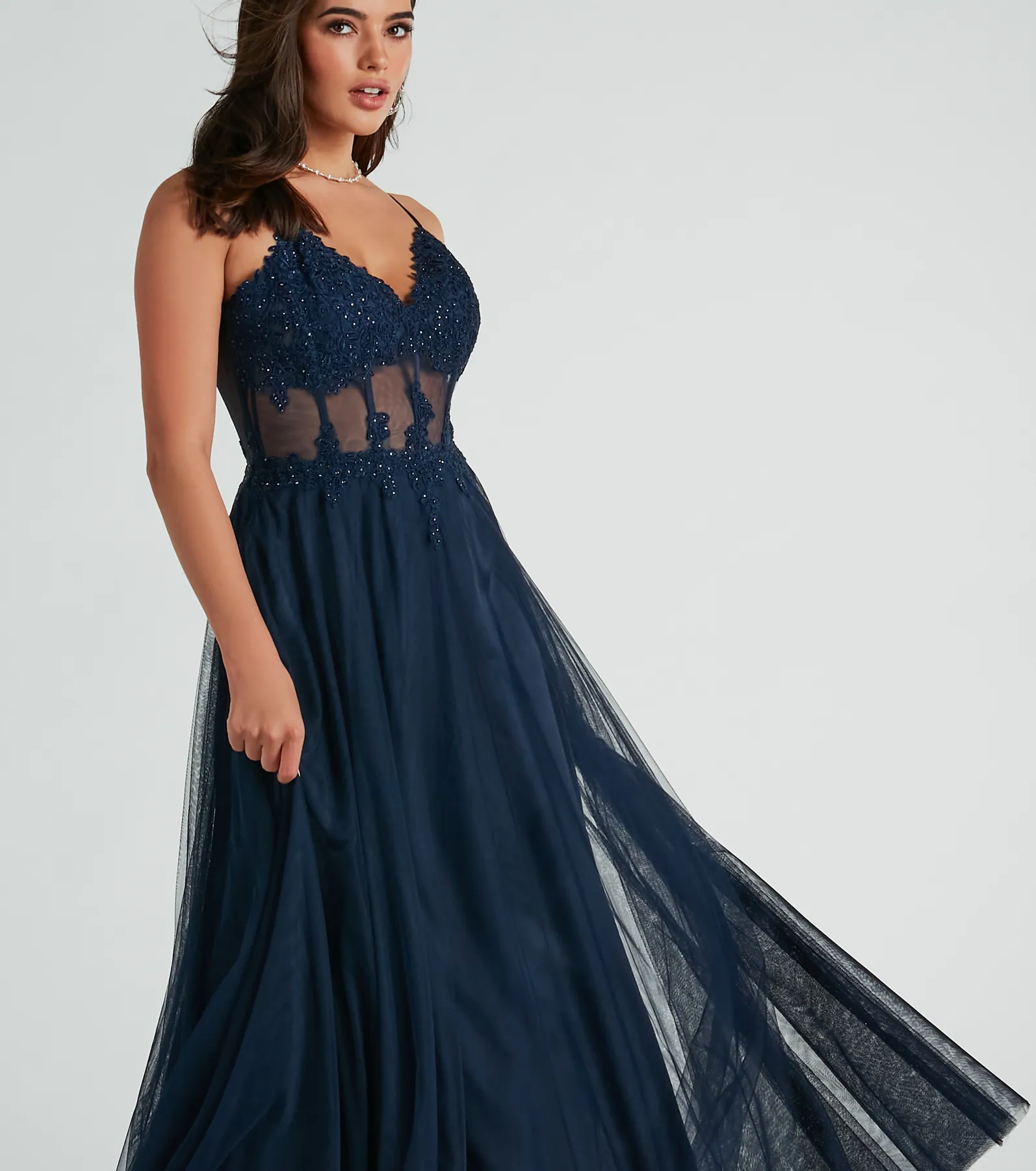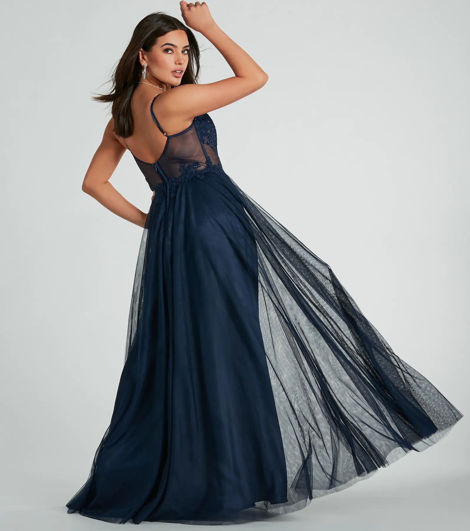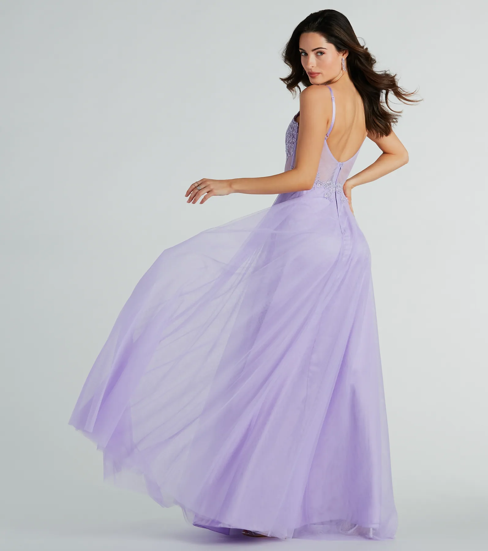 Jaci Rhinestone Embroidered Mesh Formal Dress