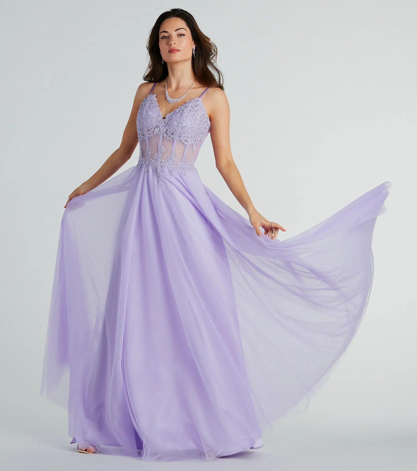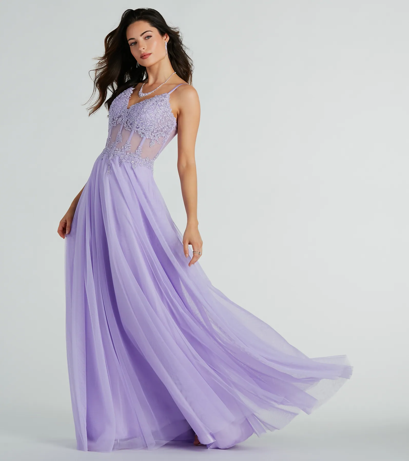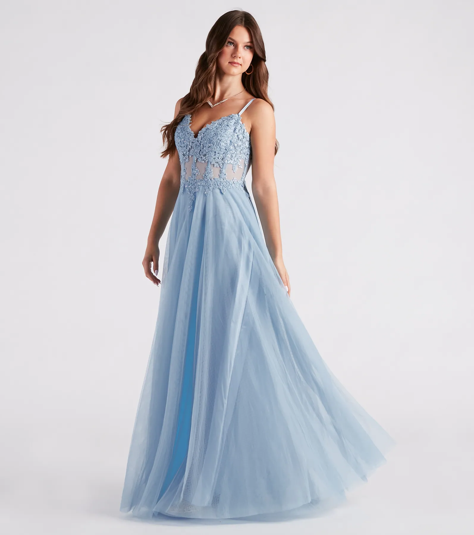 Jaci Rhinestone Embroidered Mesh Formal Dress