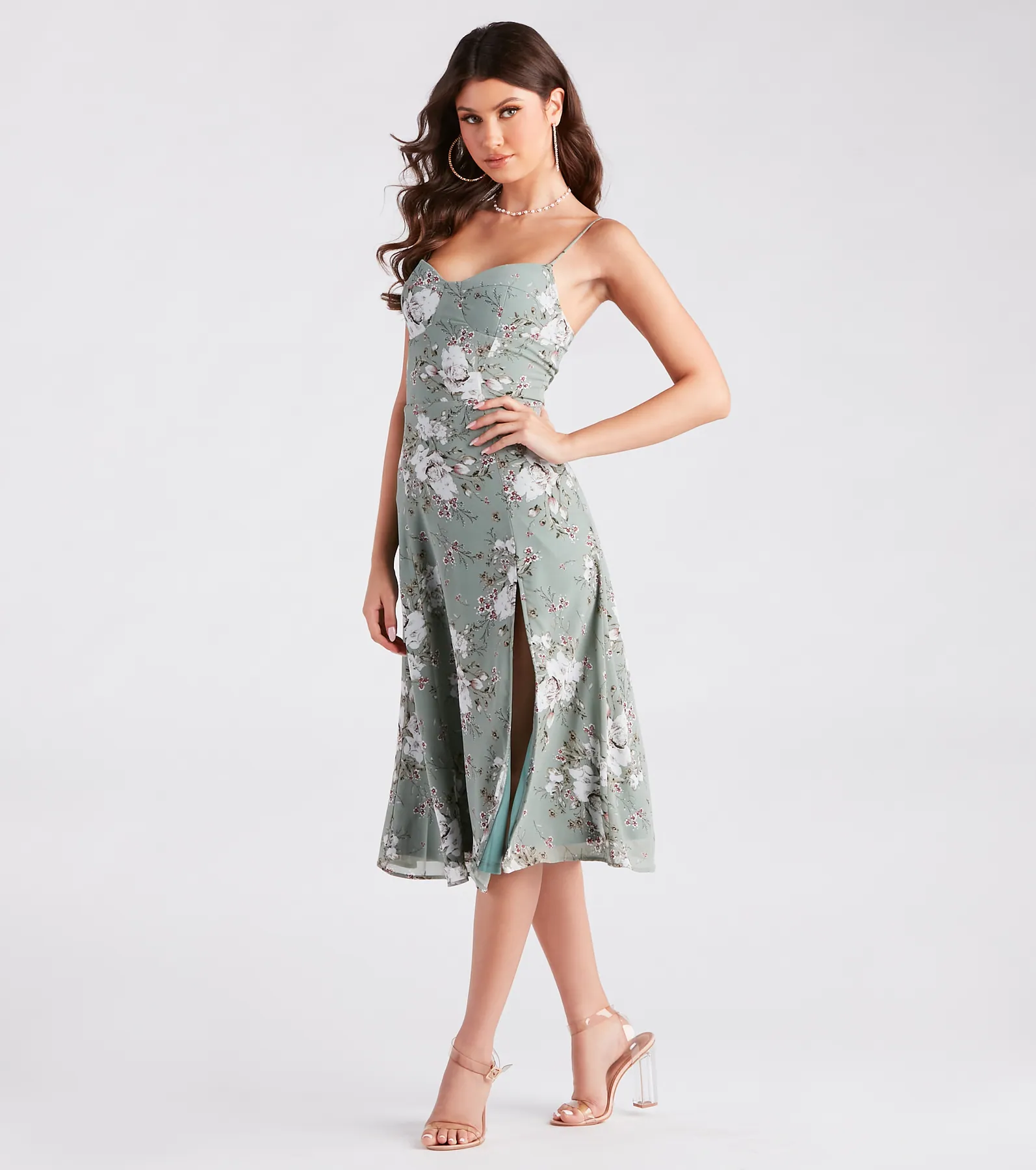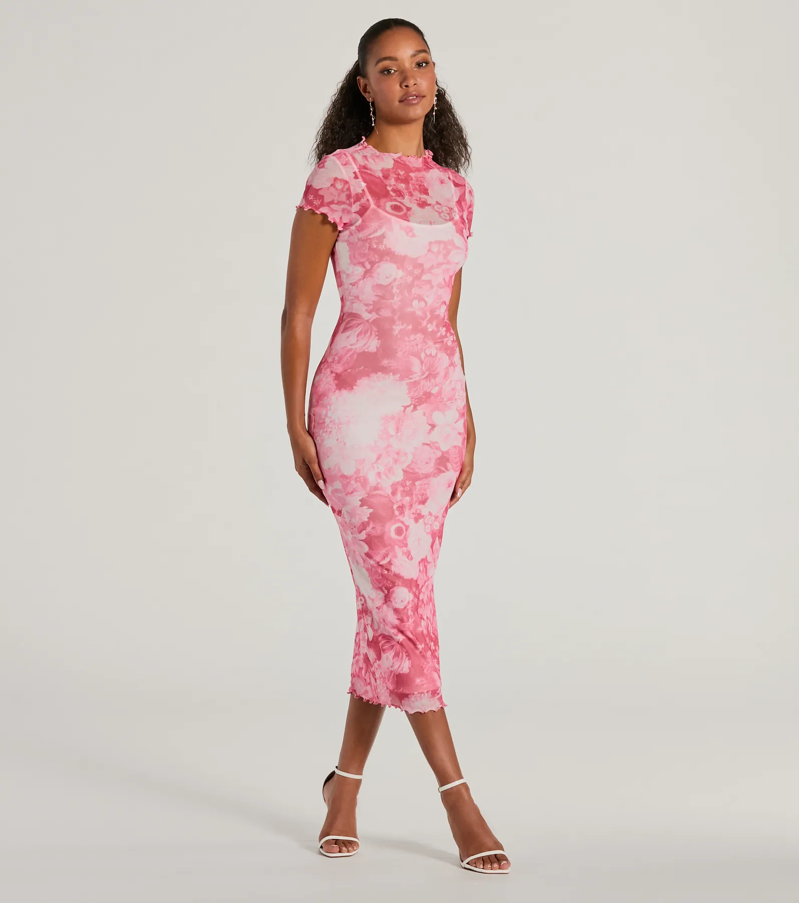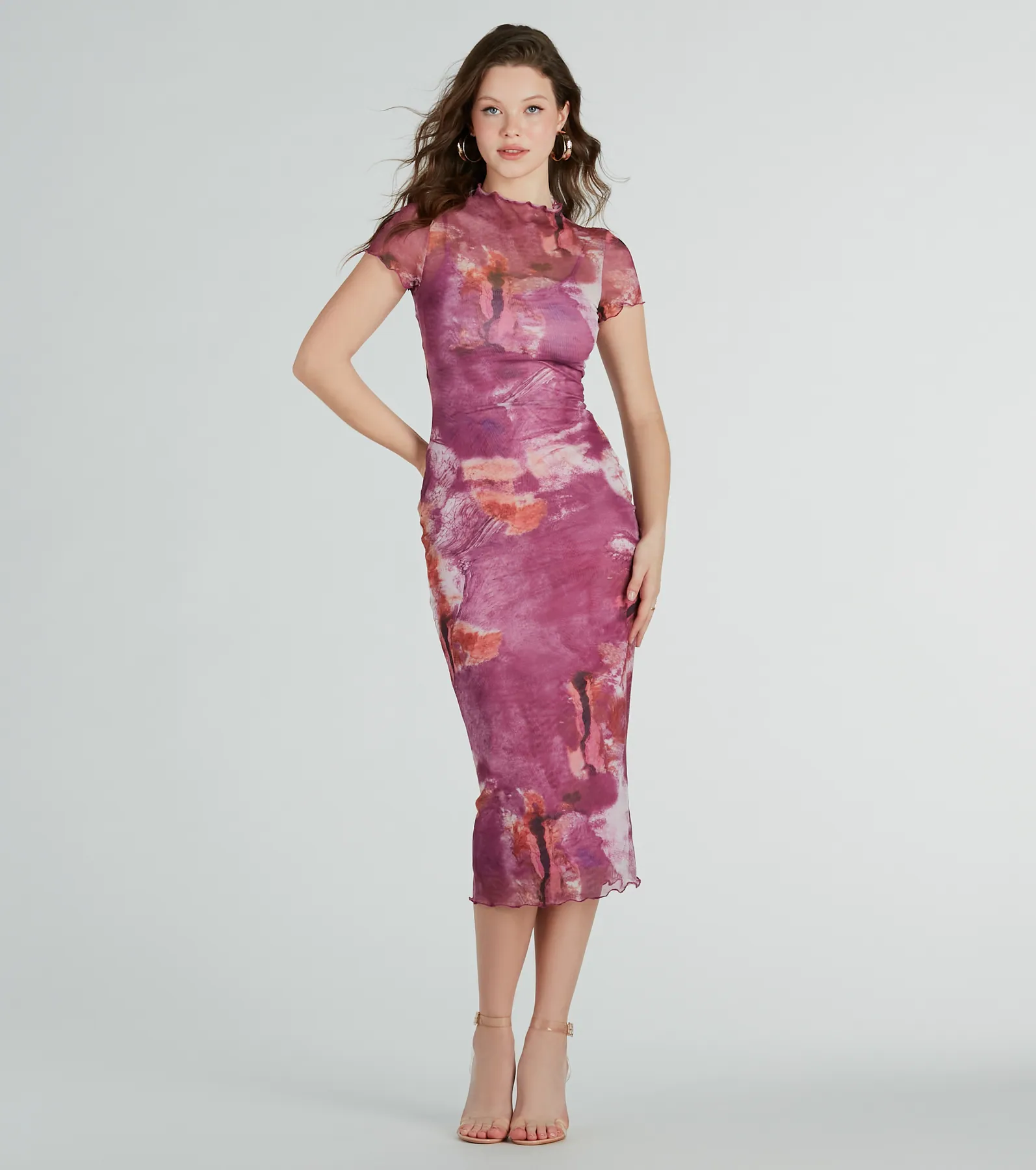Unique Feels Abstract Print Mock Neck Maxi Dress