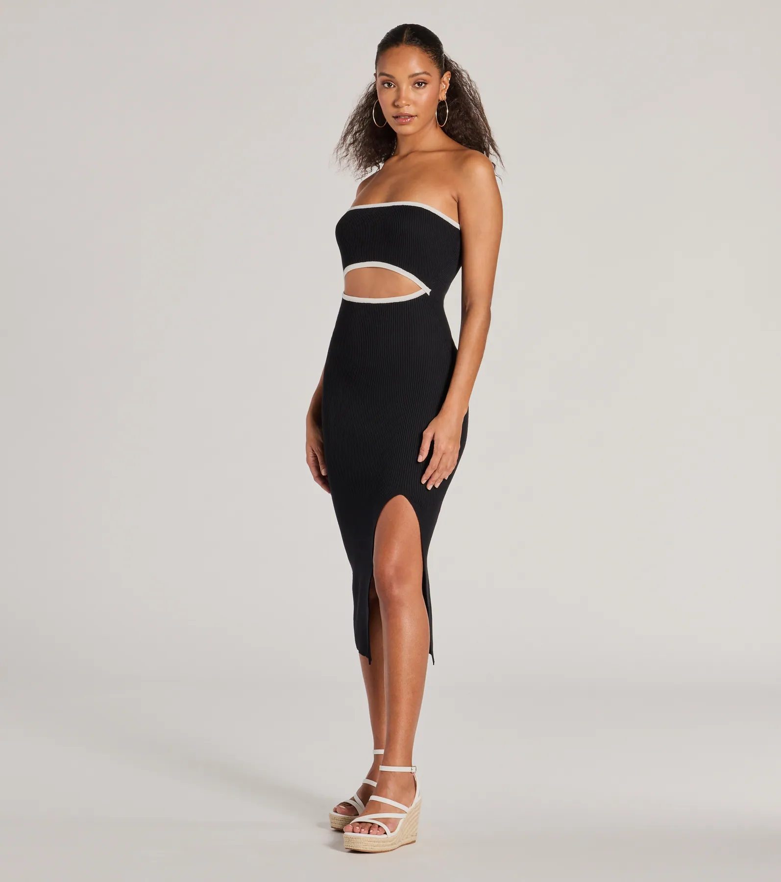 Leaving Impressions Strapless Ribbed Knit Midi Dress