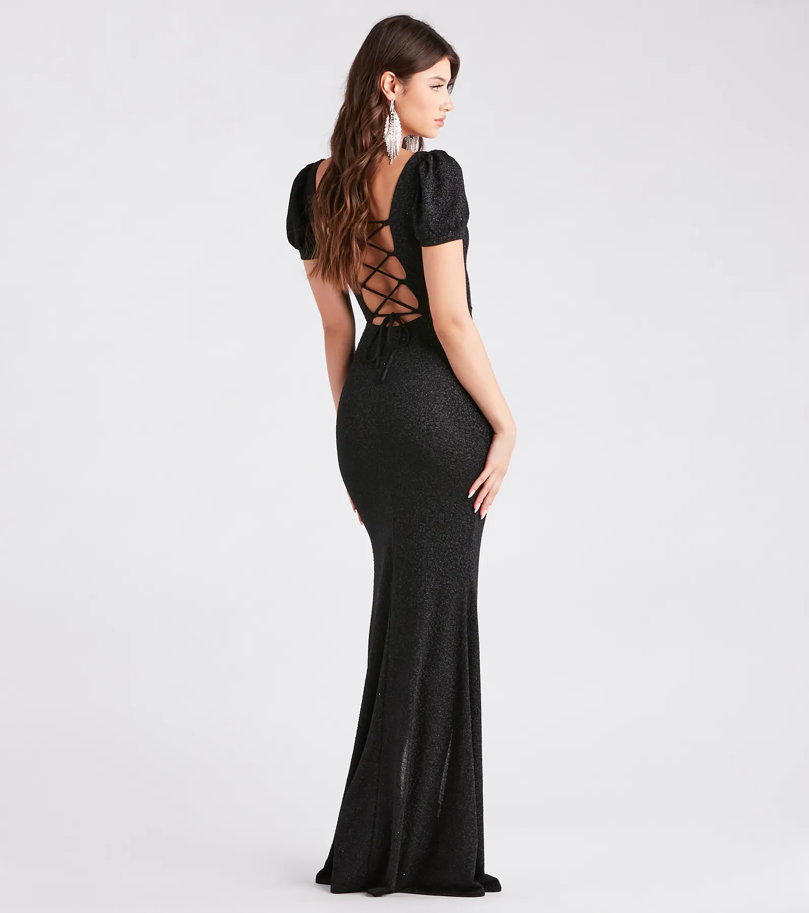Shine All Night Glitter Lace-Up Mini Dress