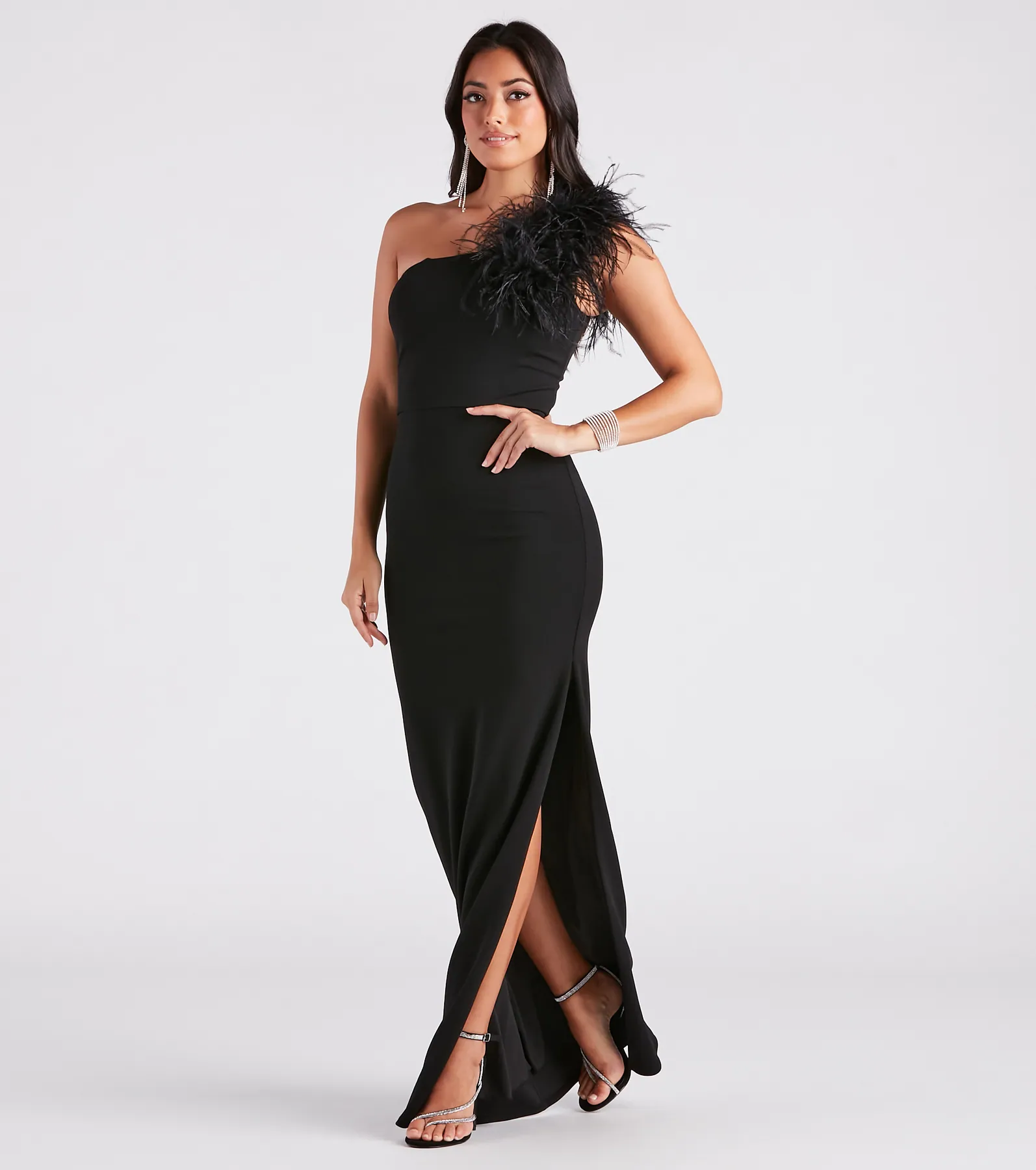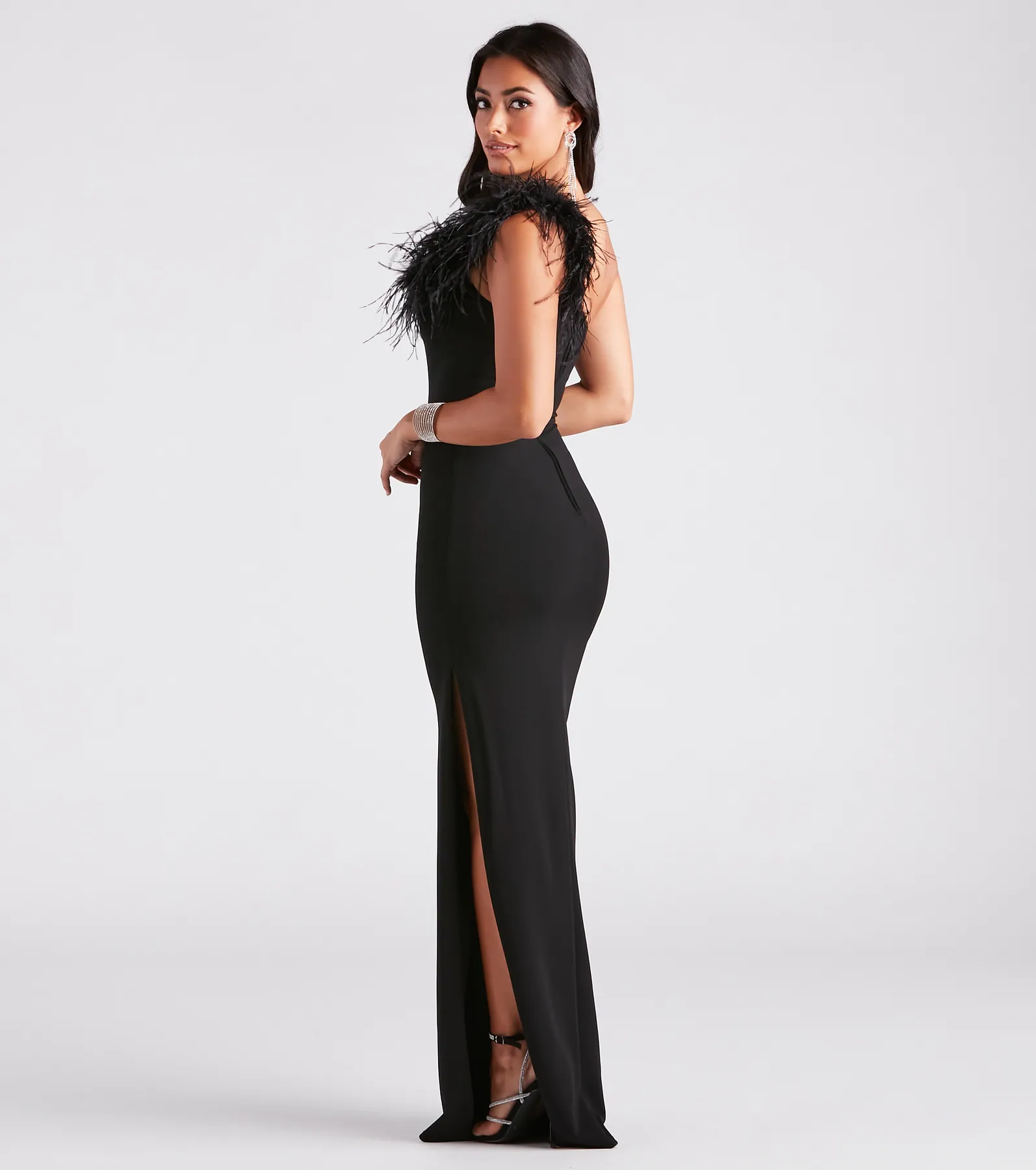 Patricia Formal Crepe Marabou Long Dress