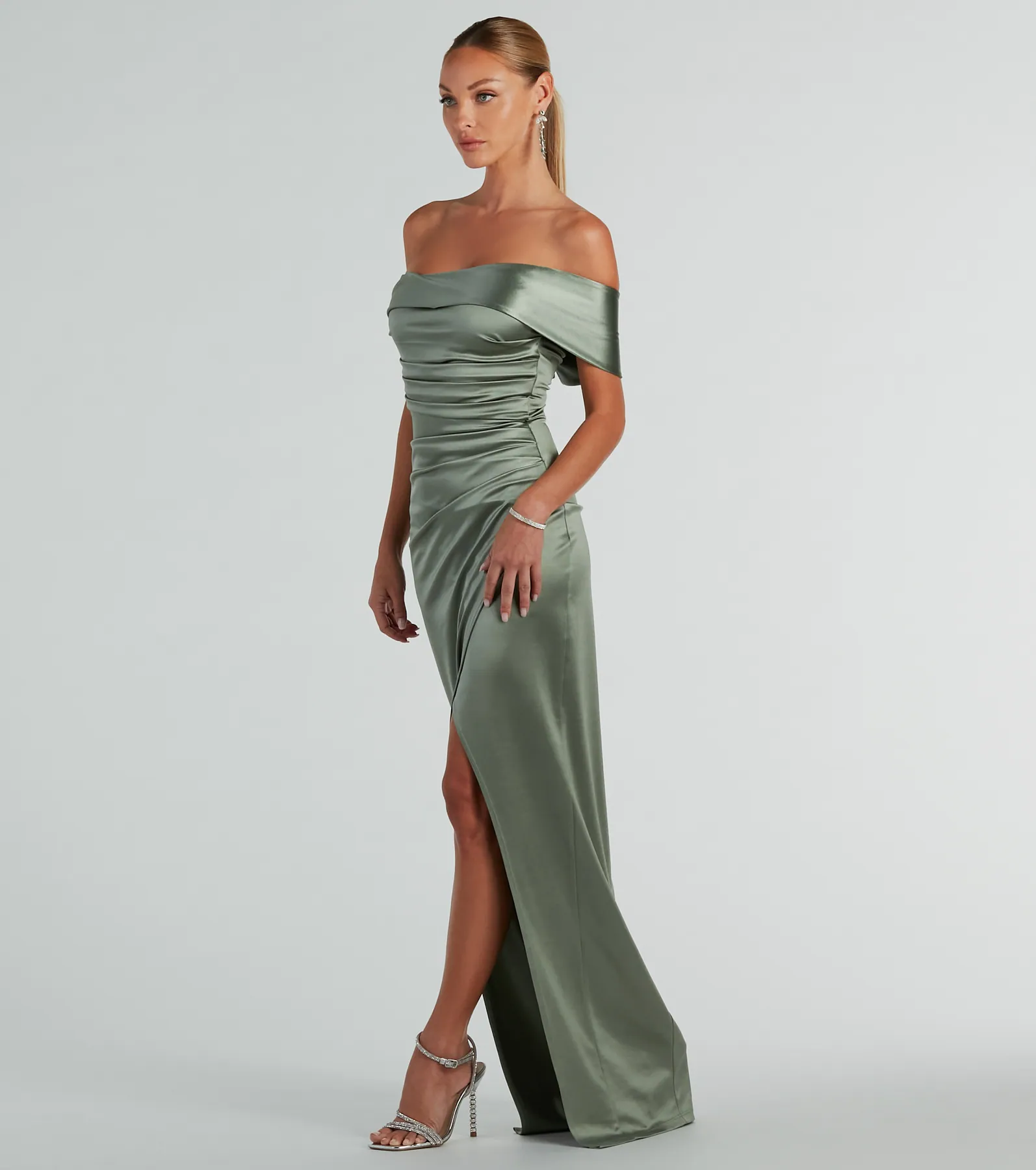 Maeva Formal Satin Off-The-Shoulder Dress
