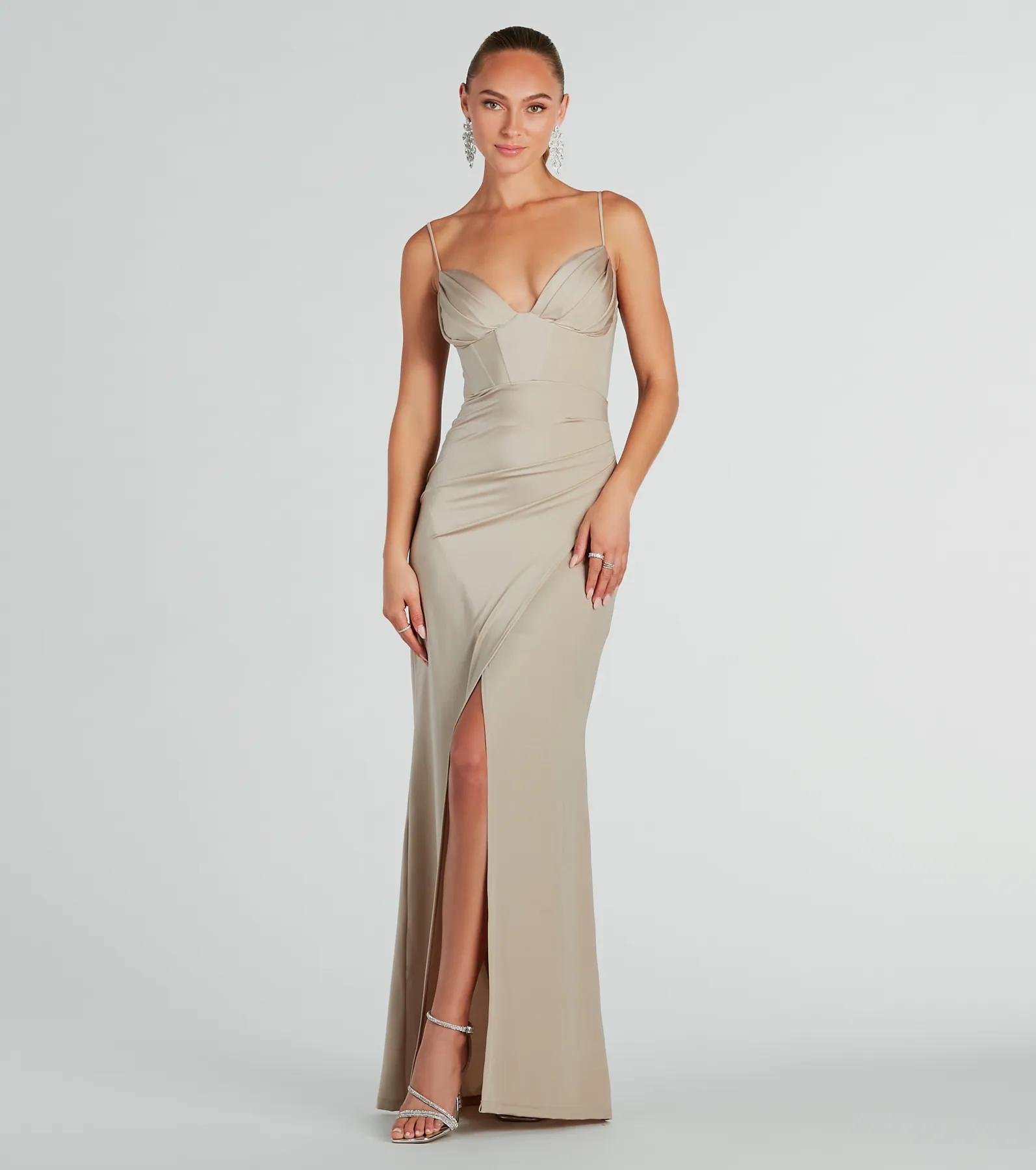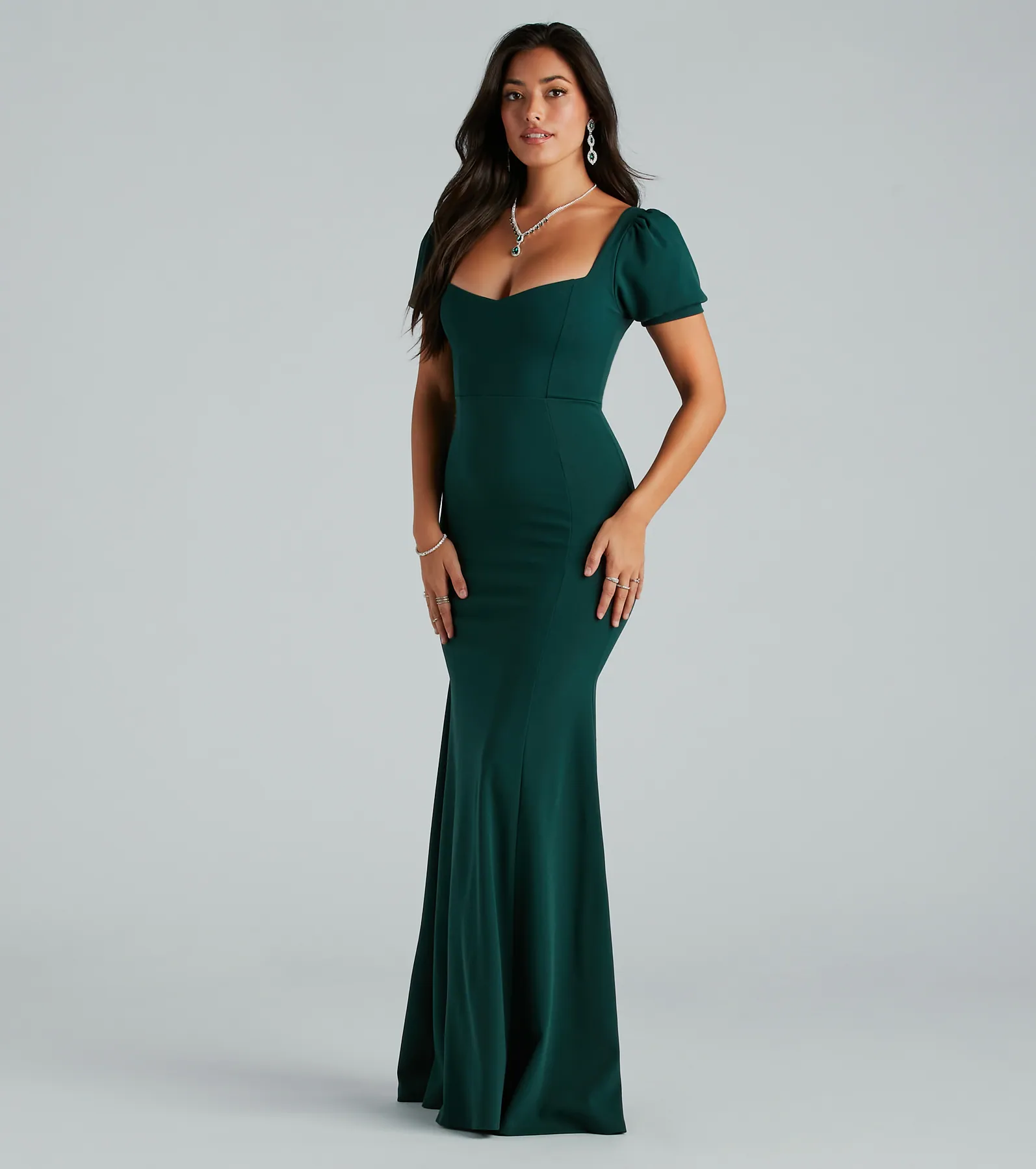 Marcie Formal Crepe Short Sleeve Mermaid Dress