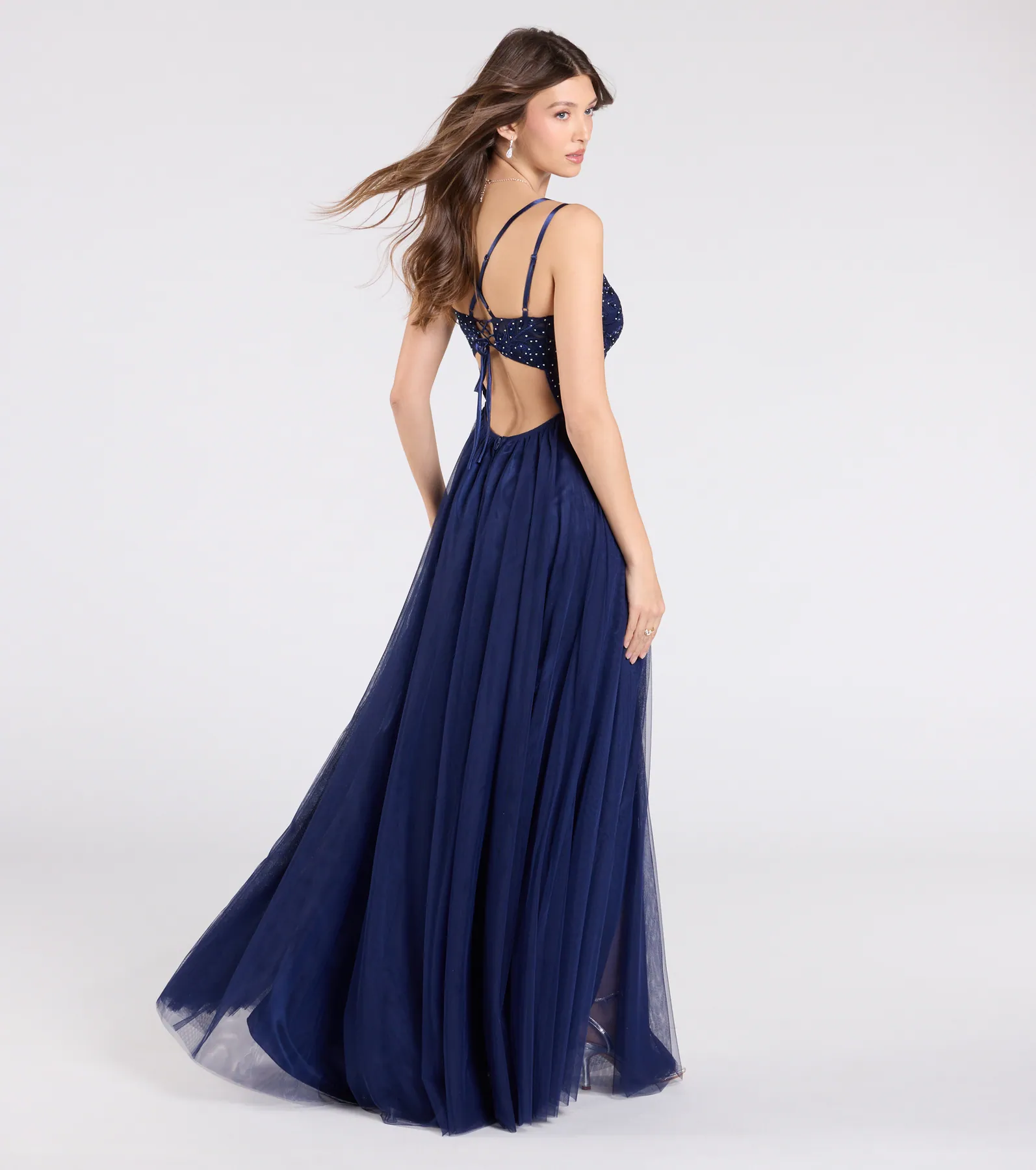 Jaylee Lace-Up Sequin Mesh Formal Dress