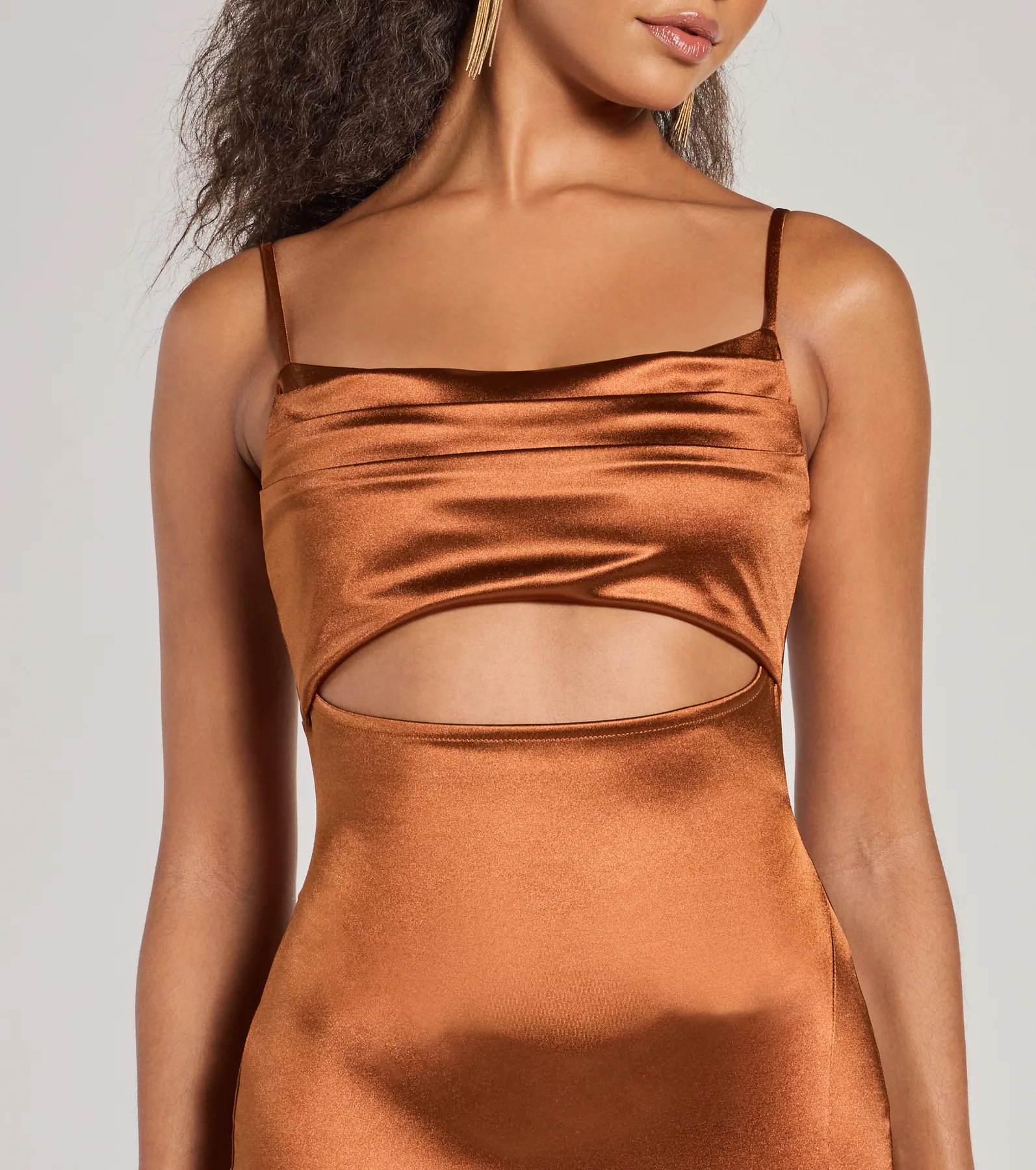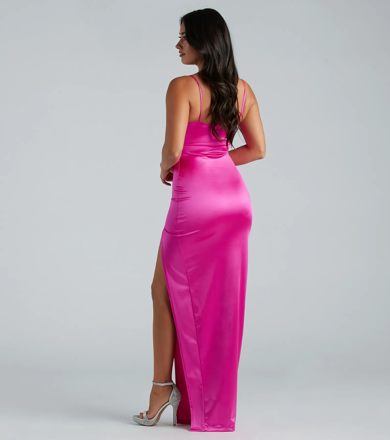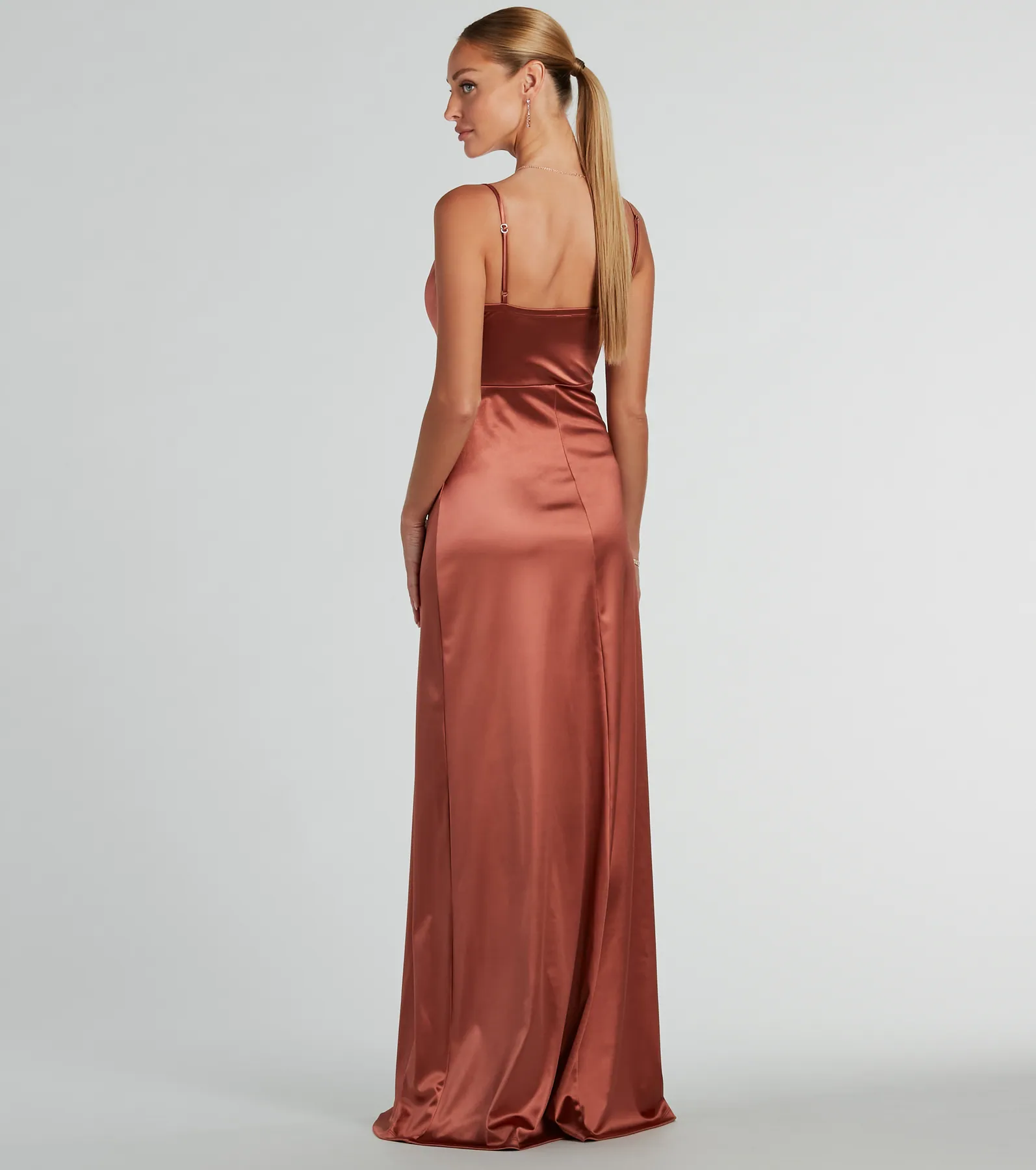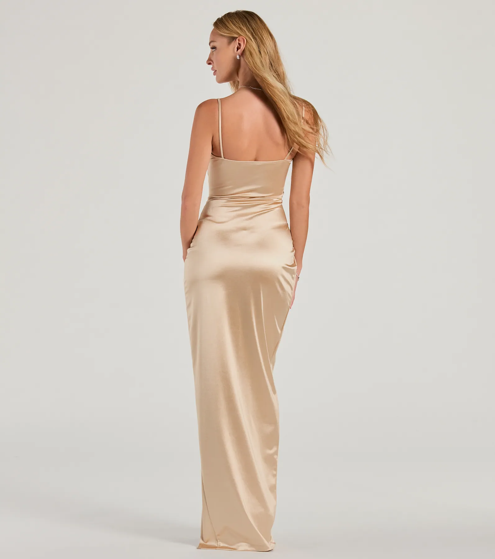 Ellie Cowl Neck A-Line Long Satin Formal Dress