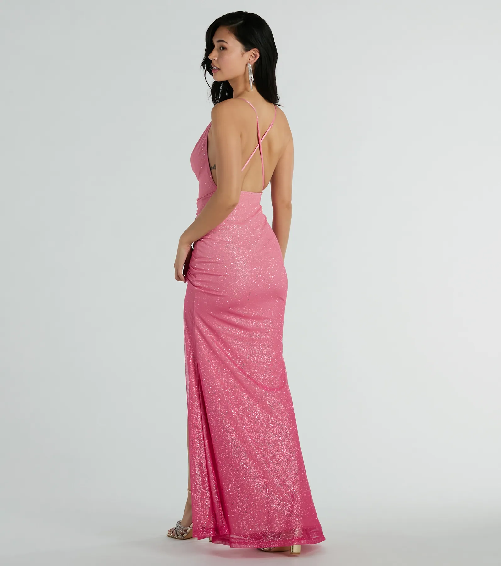 Analia Halter Slit Mermaid Sequin Formal Dress