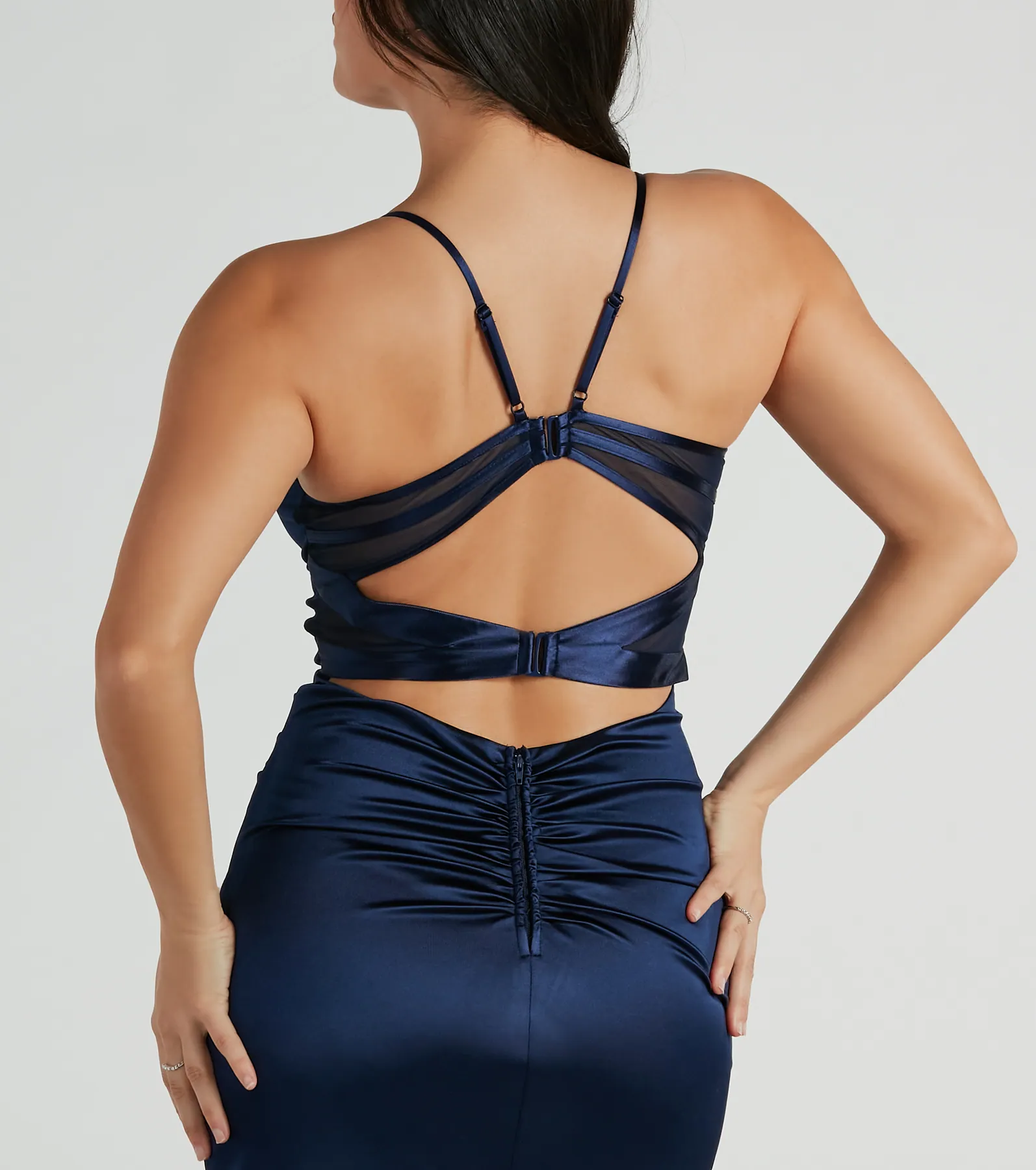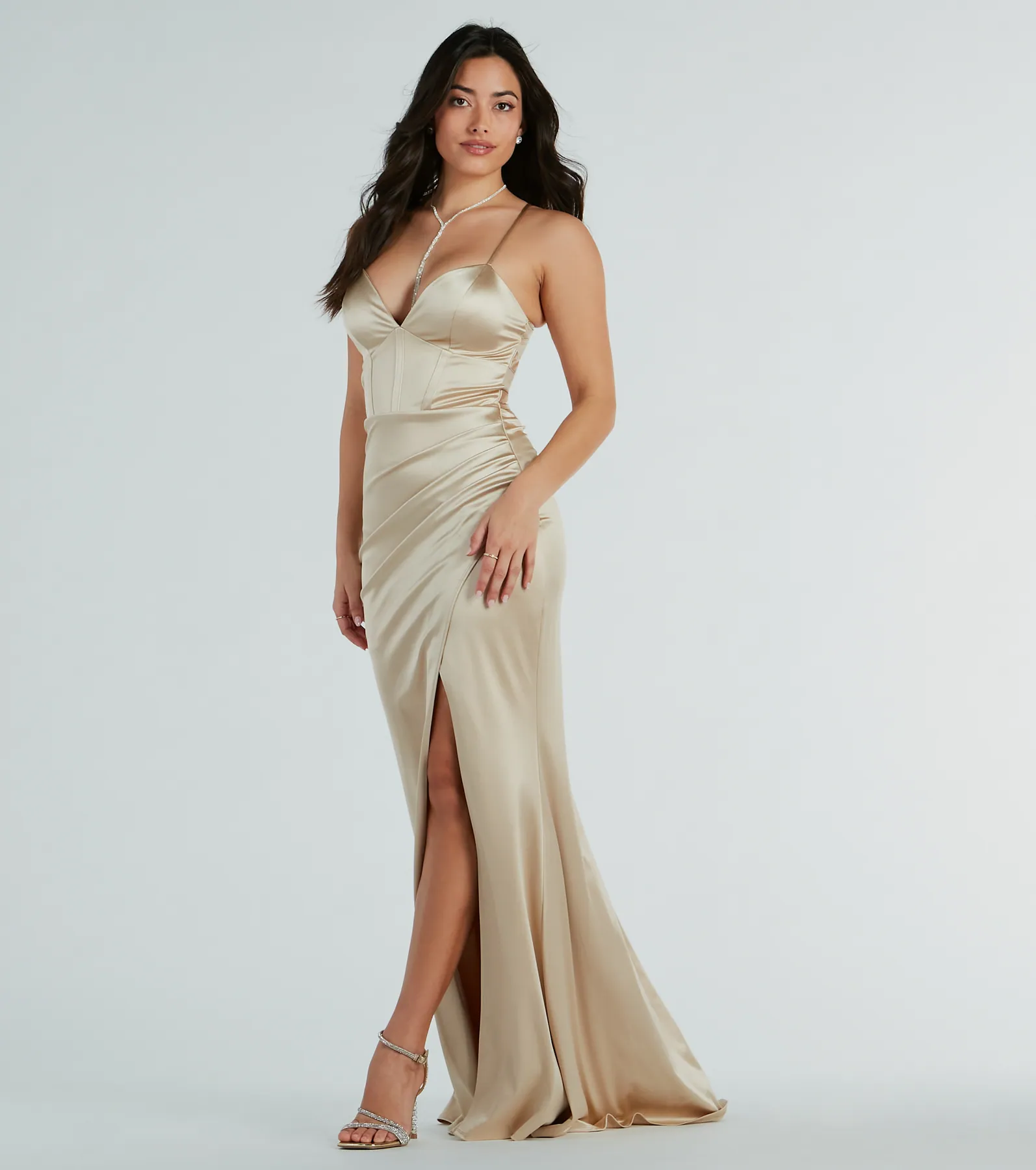 Loraine Sweetheart Wrap Mermaid Satin Formal Dress
