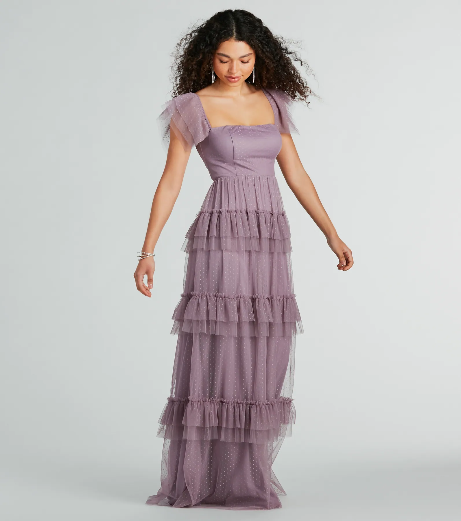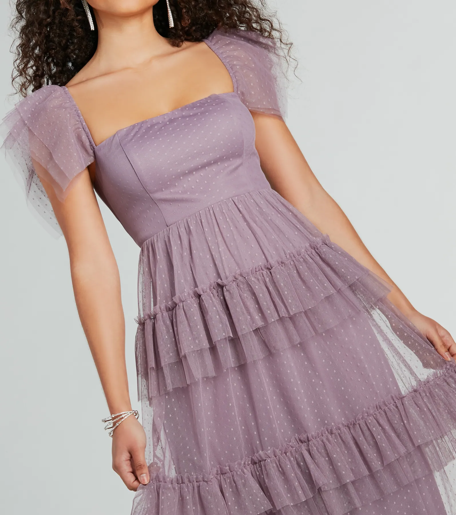 Arylee Polka Dot A-Line Ruffle Tulle Formal Dress