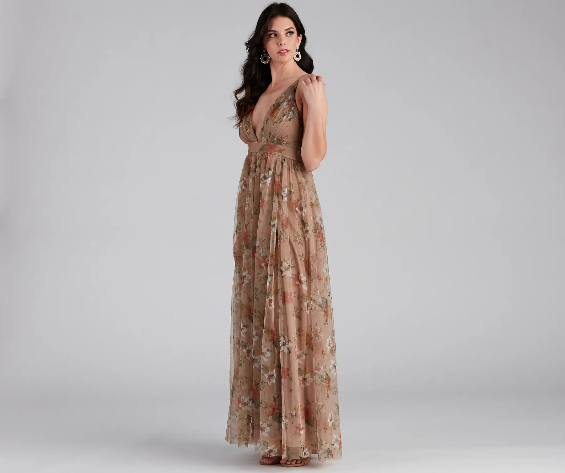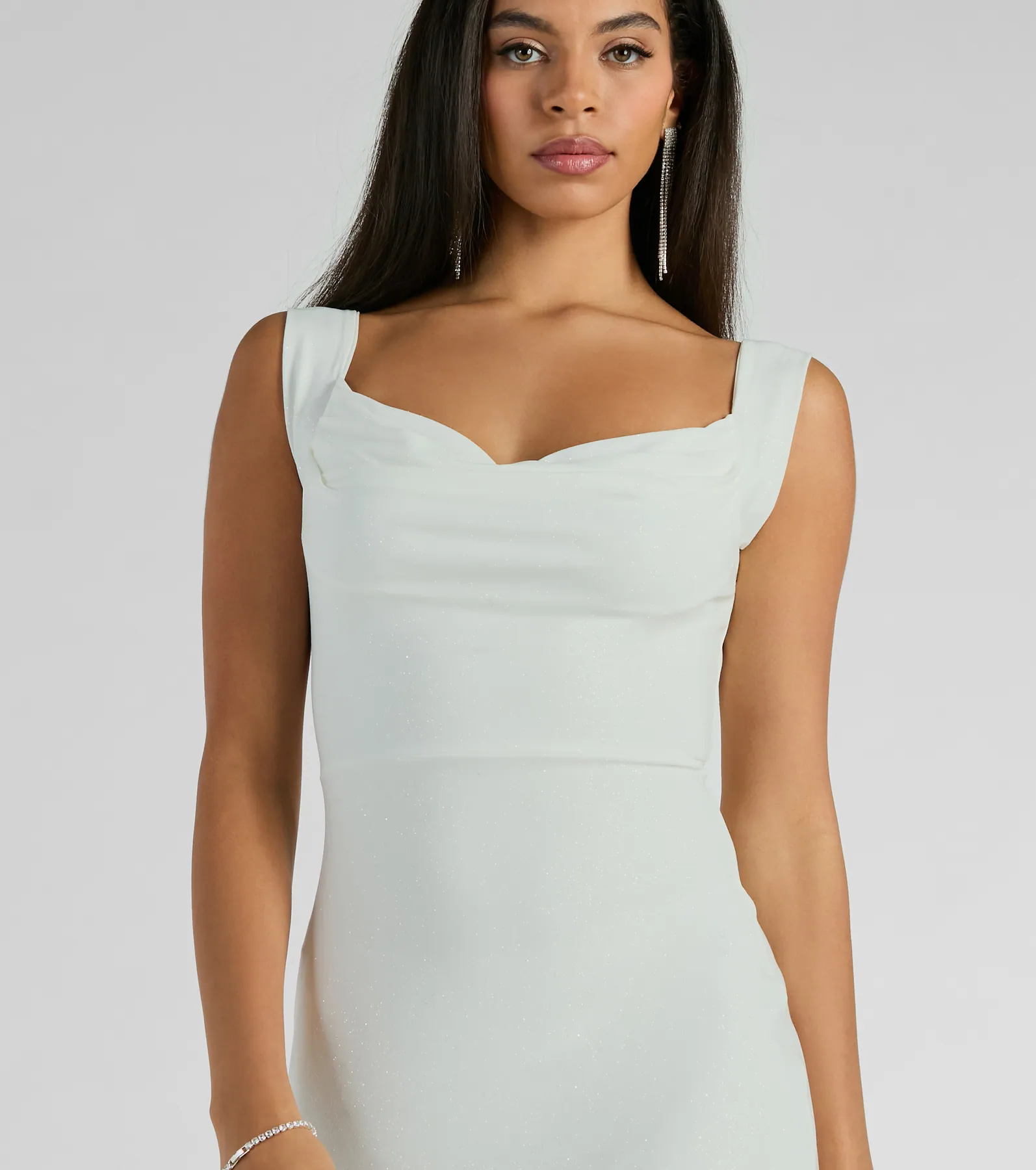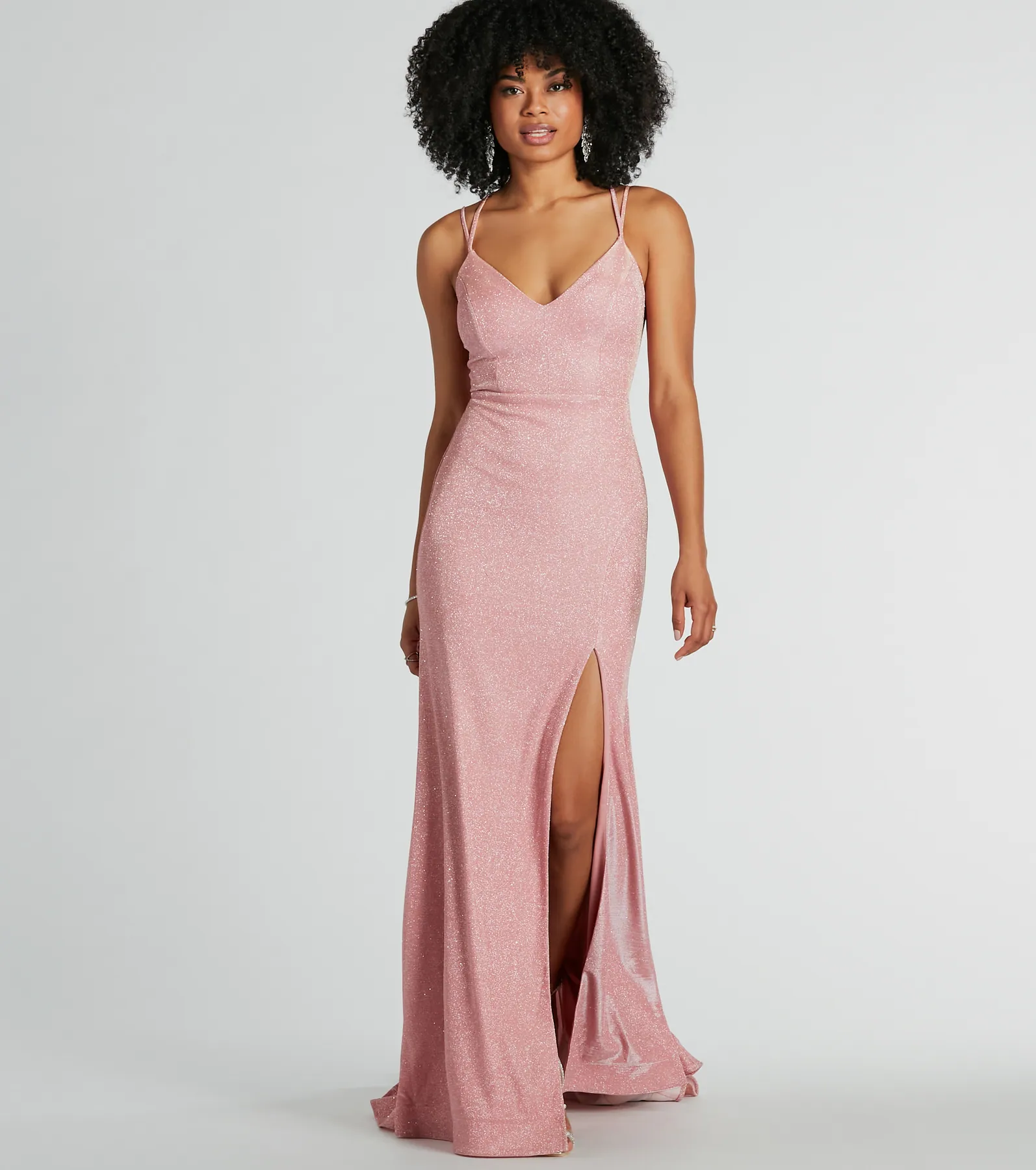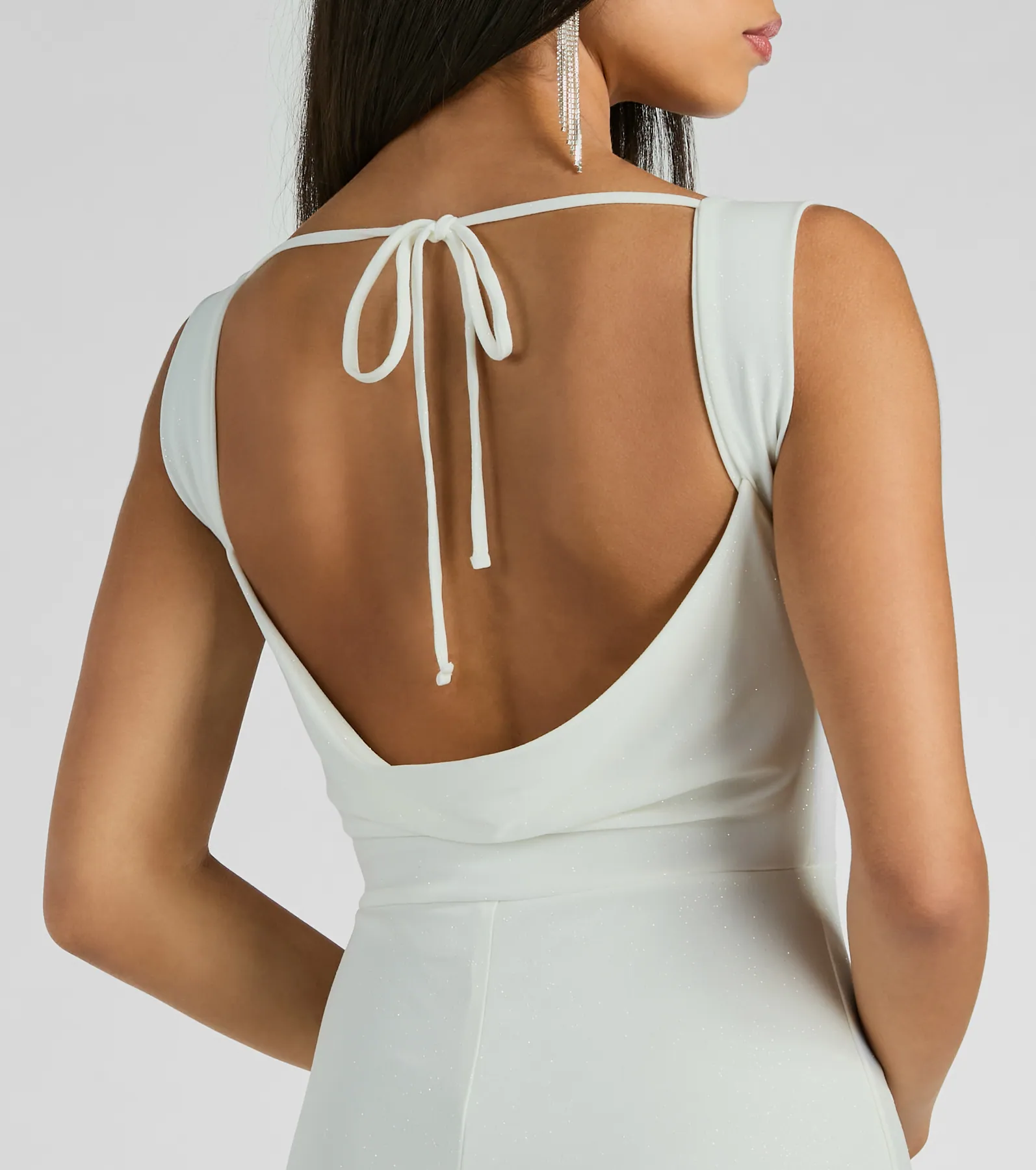 Claire Low-Back Slim Glitter Mesh Formal Dress