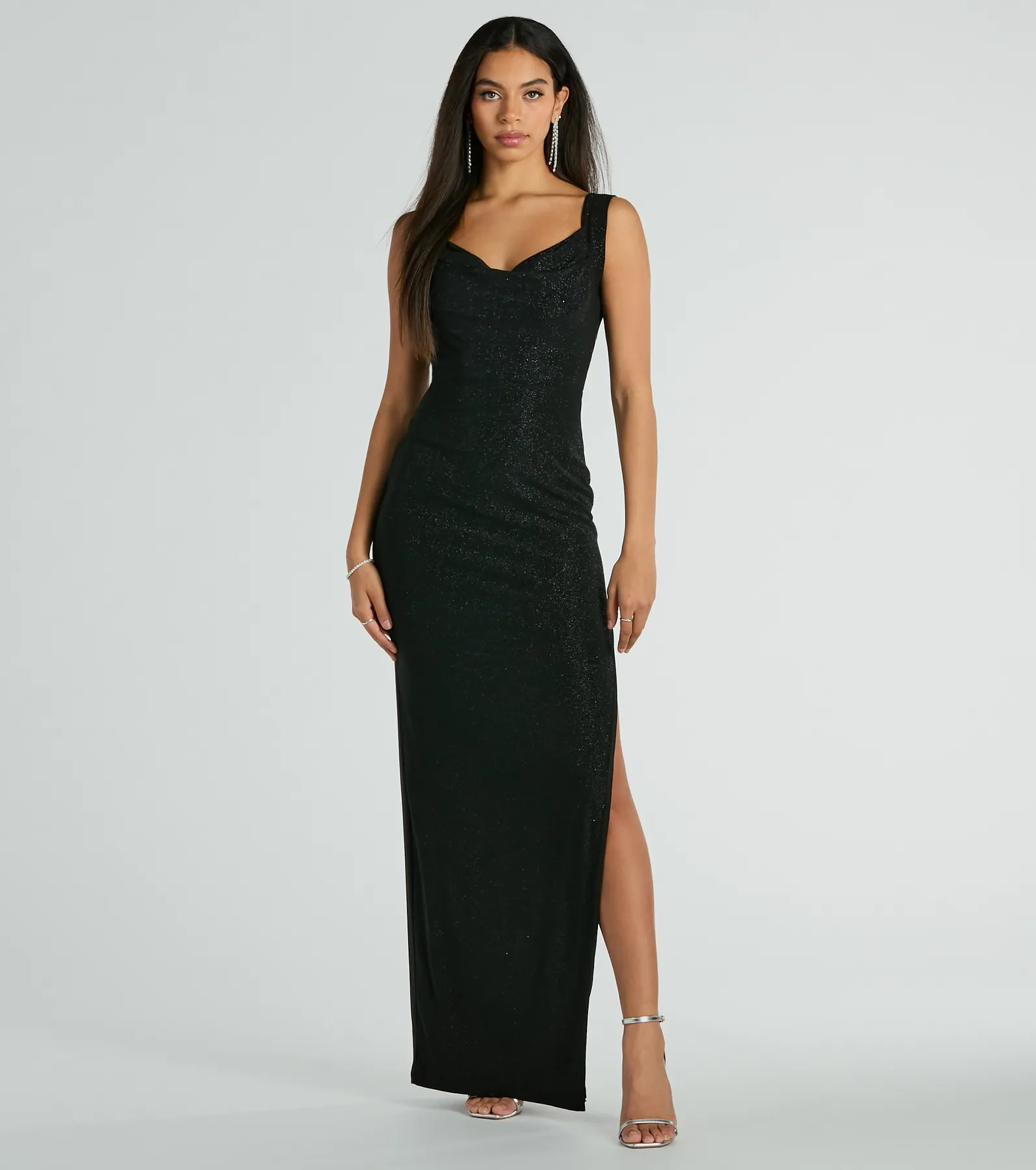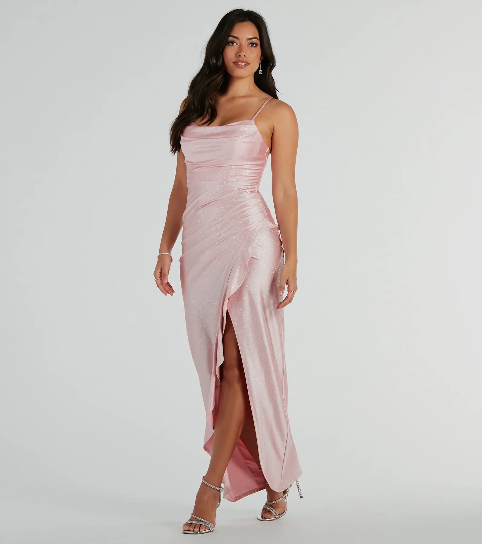 Ellen Ruffled Slit Long Glitter Formal Dress