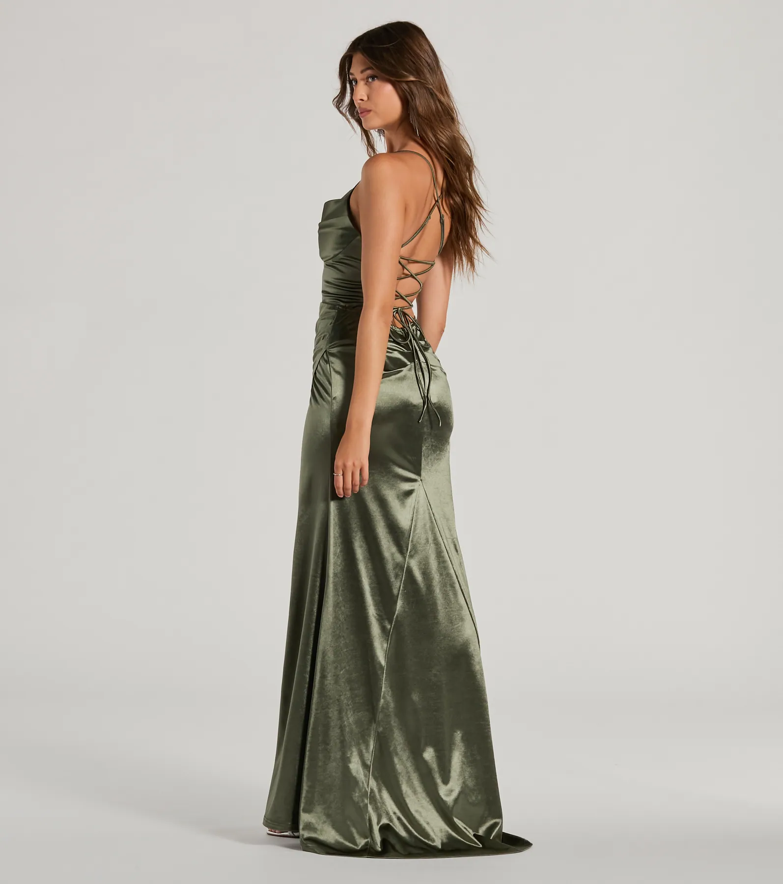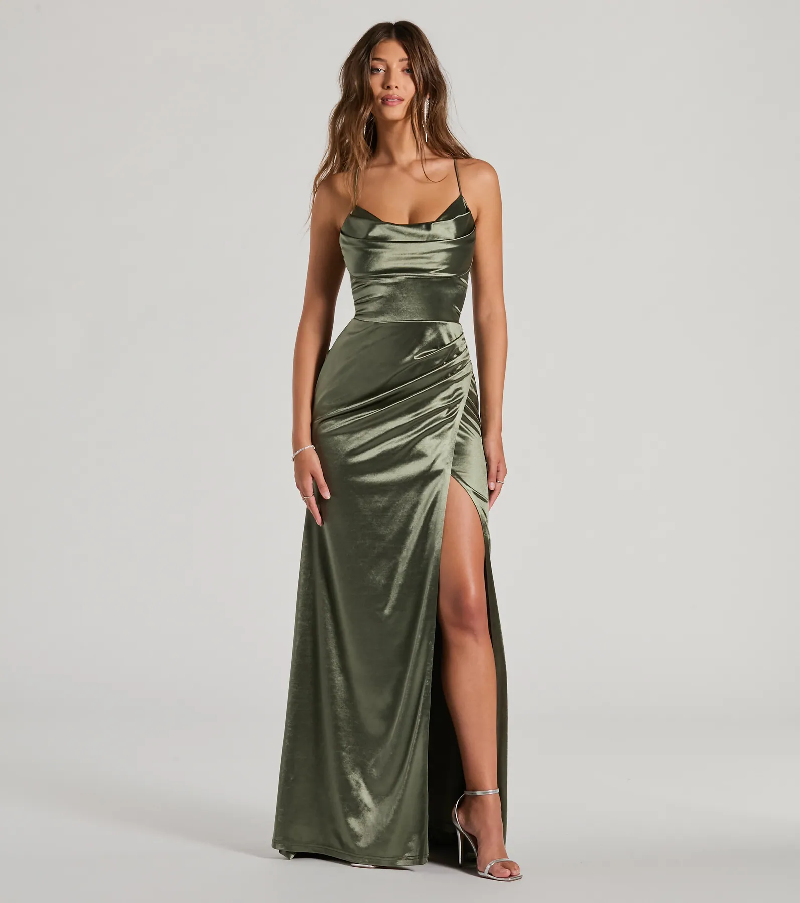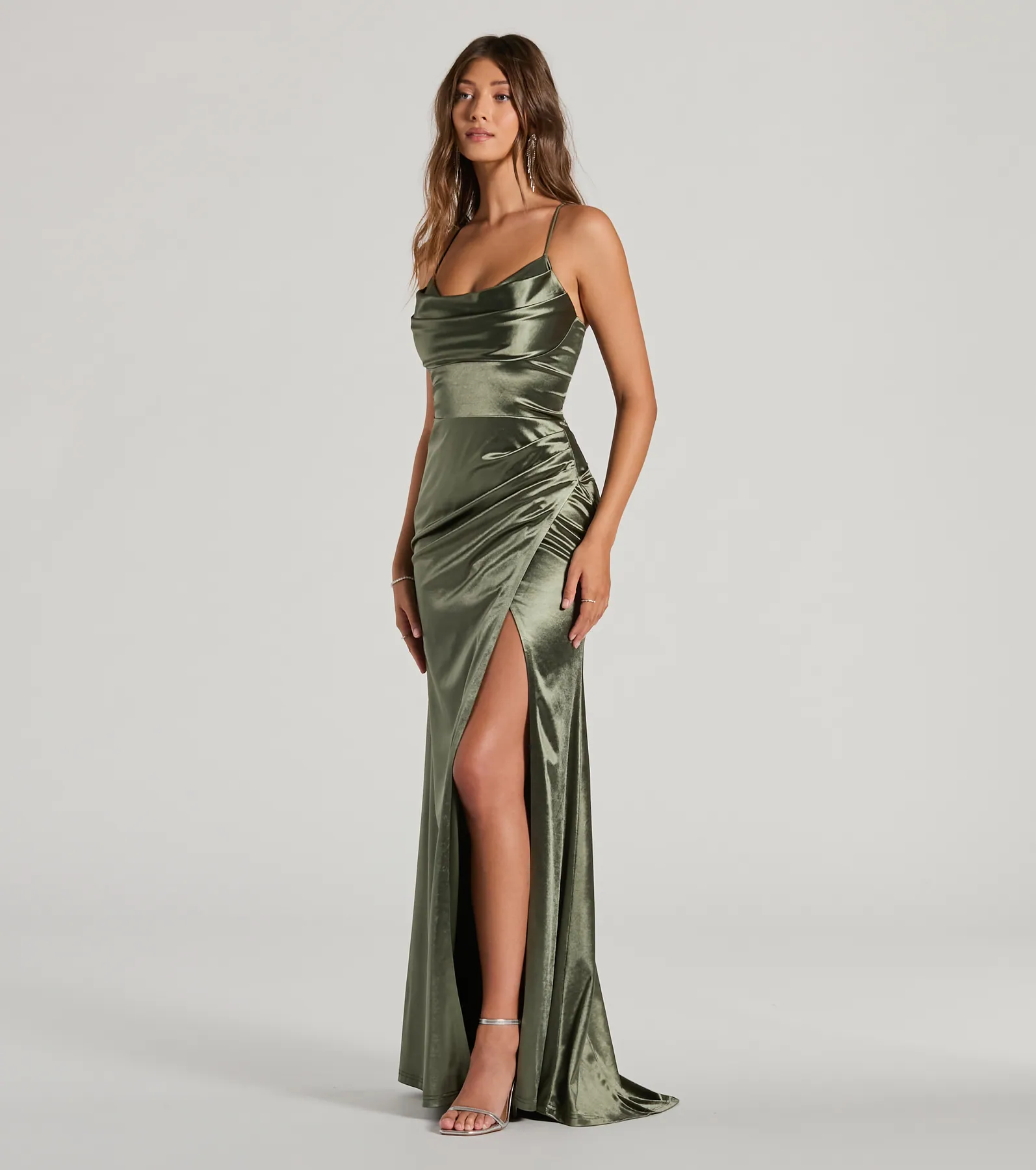 Dani Cowl Neck Lace-Up A-Line Satin Formal Dress
