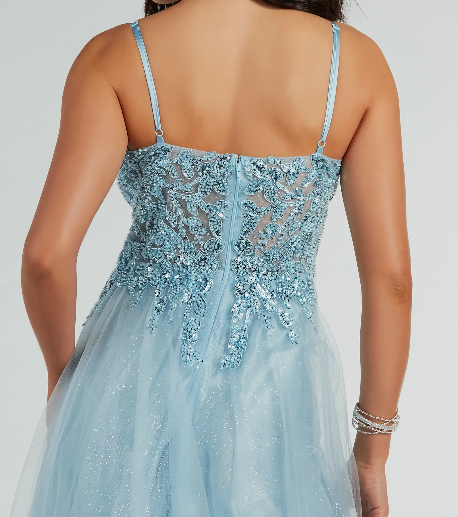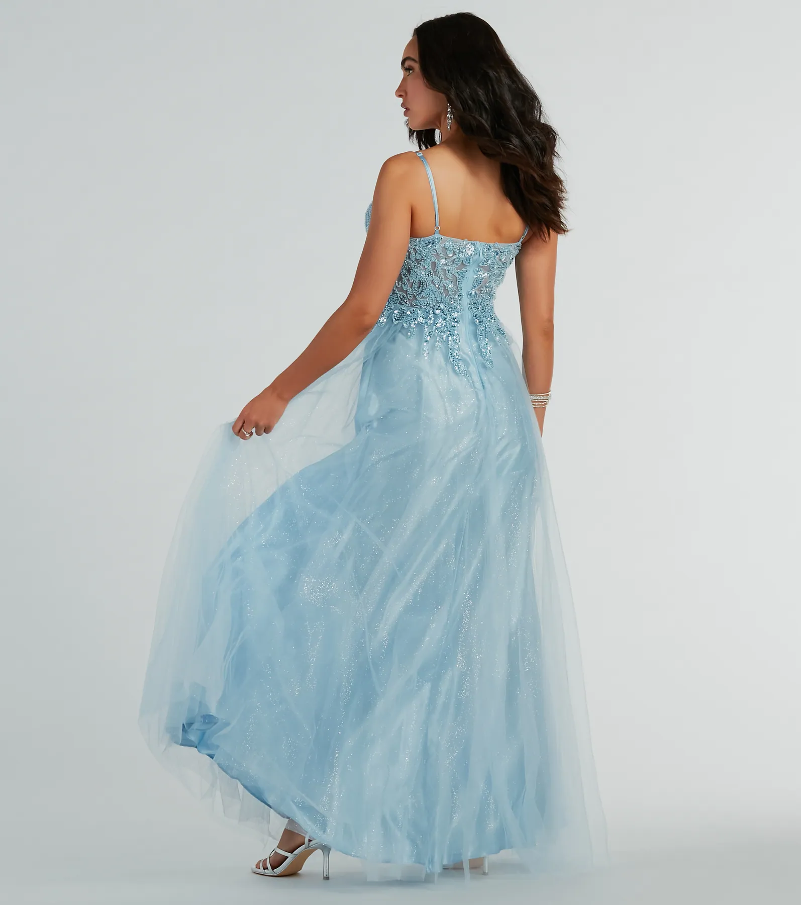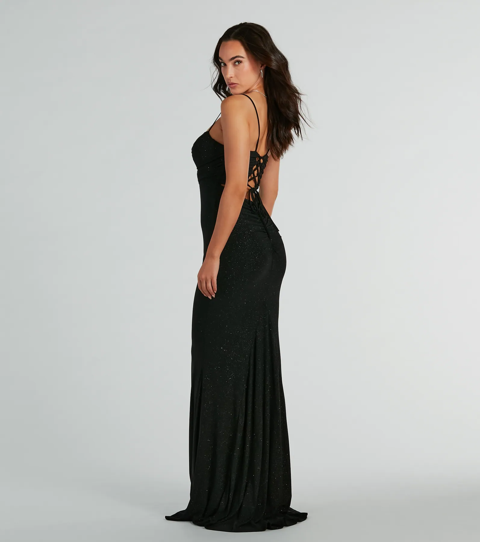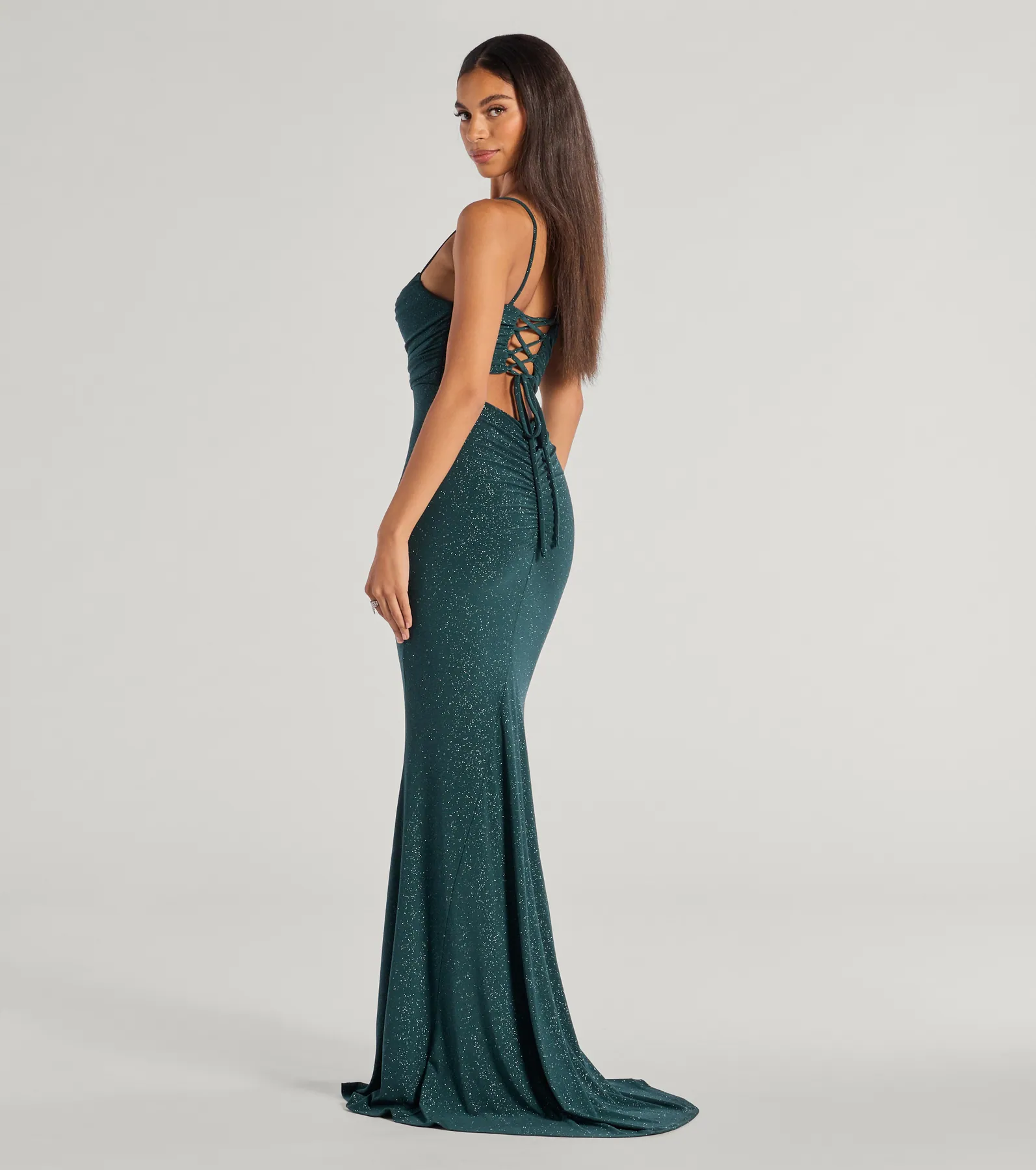 Colleen Lace Up Mermaid Glitter Formal Dress