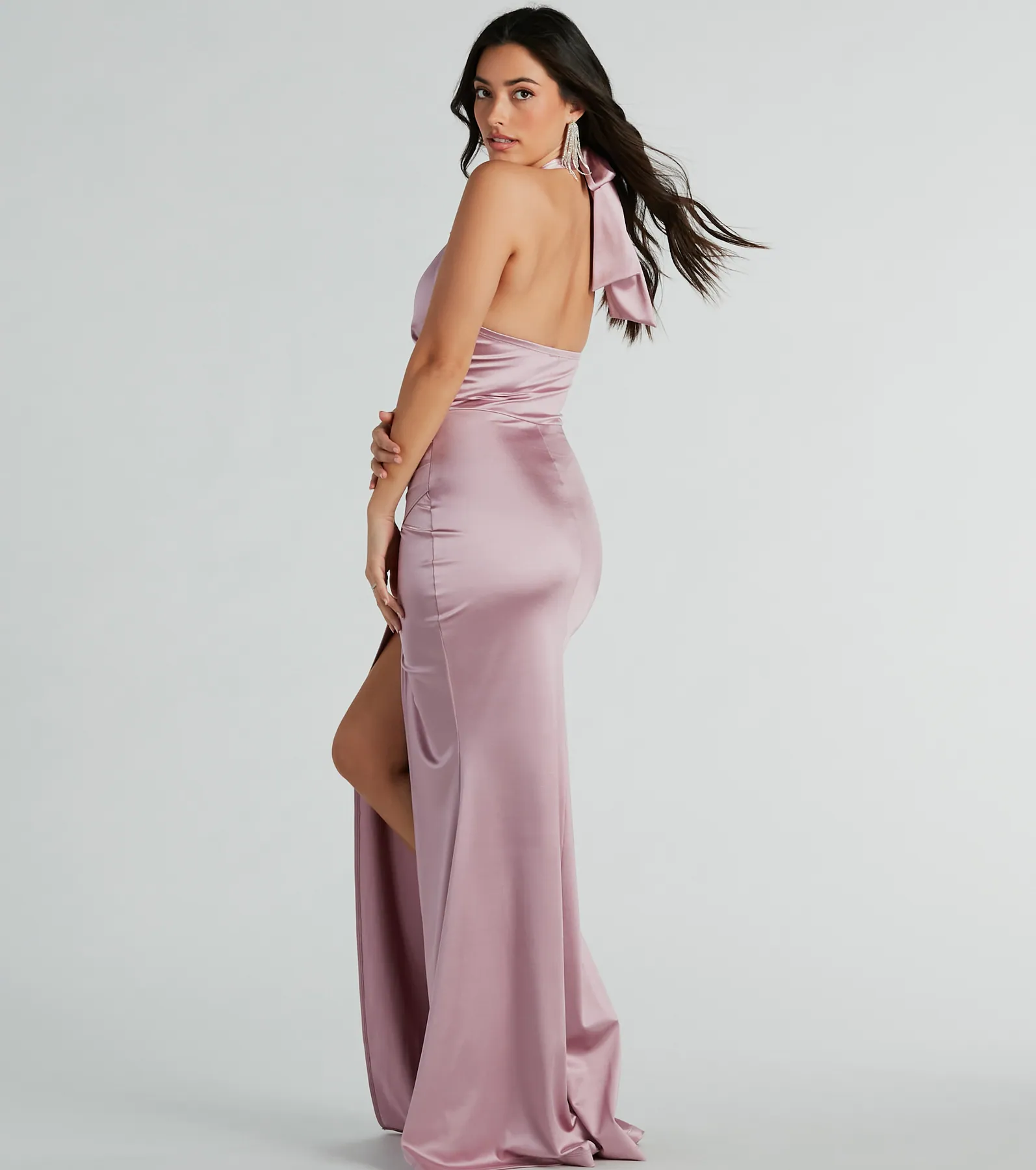 Kourtney Halter Mermaid Satin Formal Dress