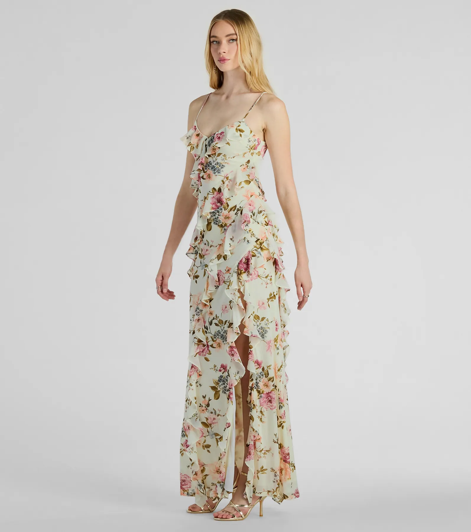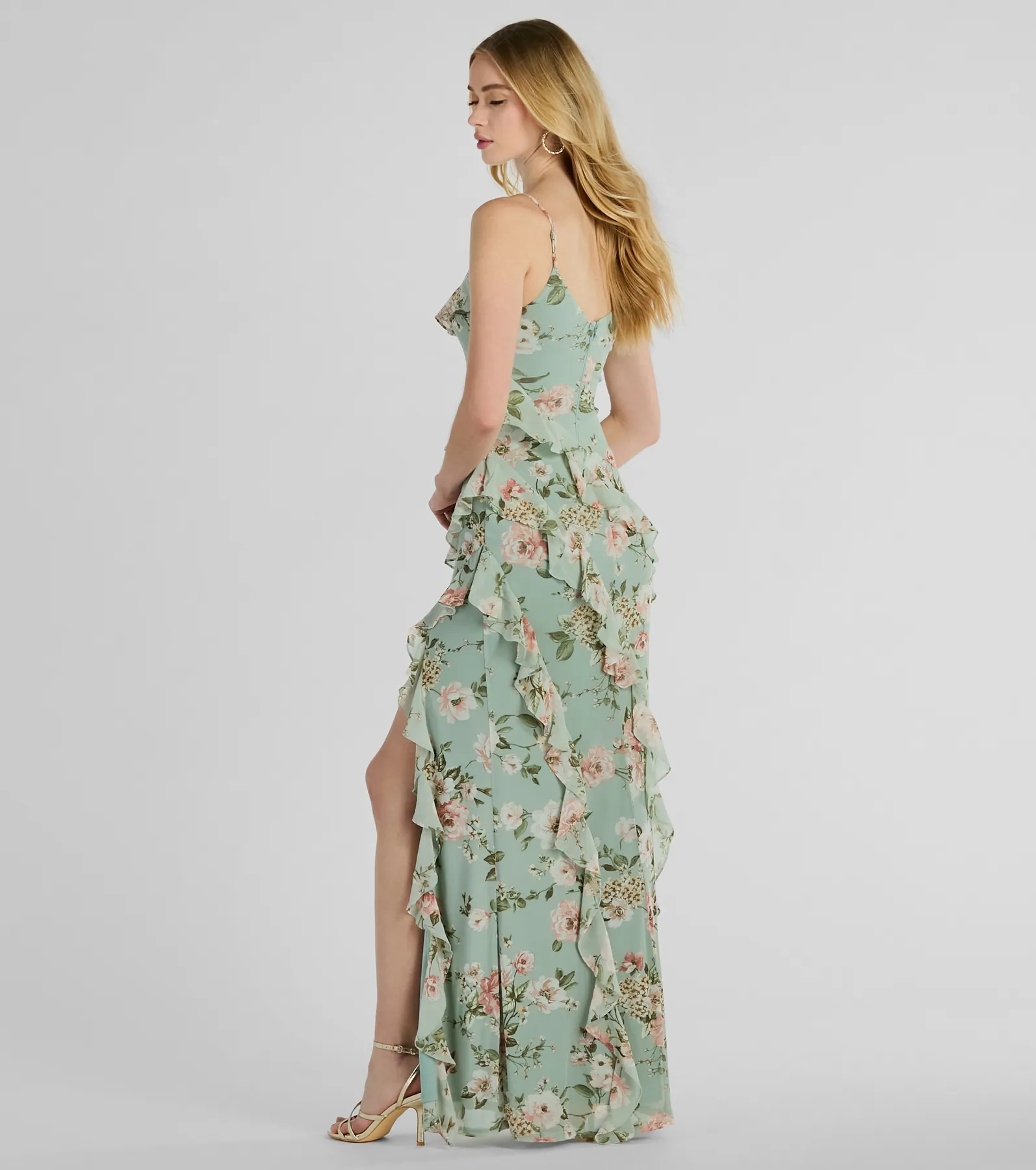 Helga V-Neck Ruffled Mermaid Floral Formal Dress