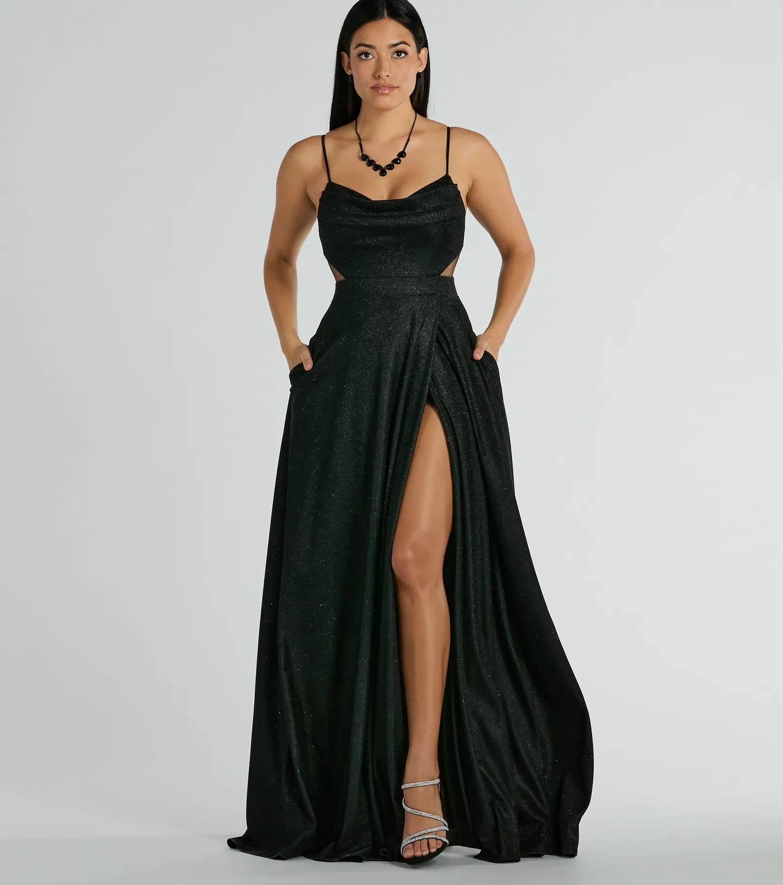 Jordan Cowl Neck Slim Glitter Ombre Formal Dress