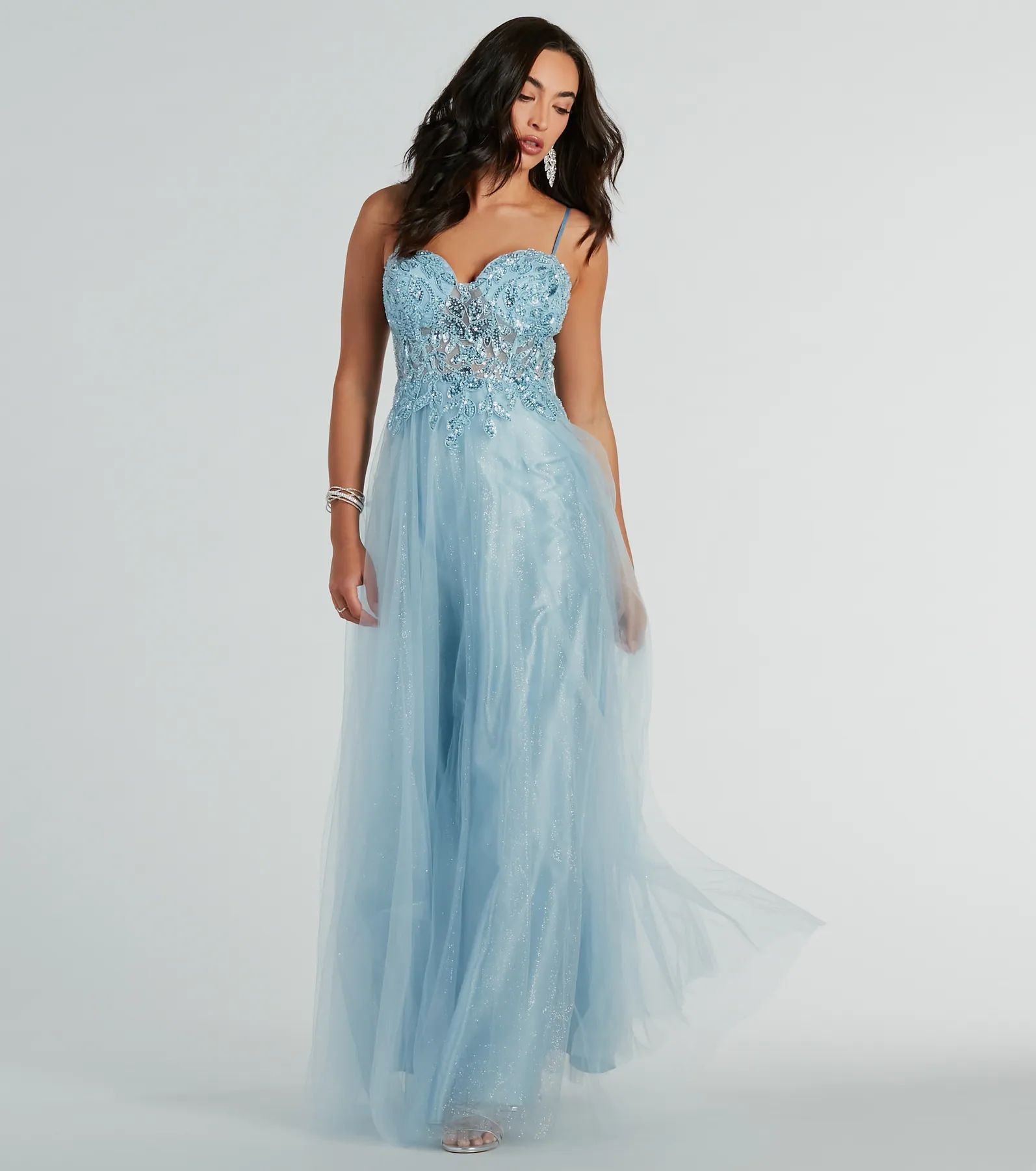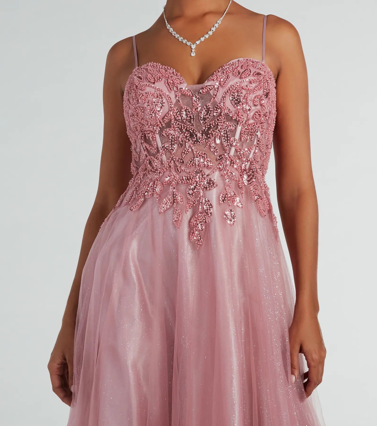 Aila Sweetheart Beaded A-Line Glitter Formal Dress