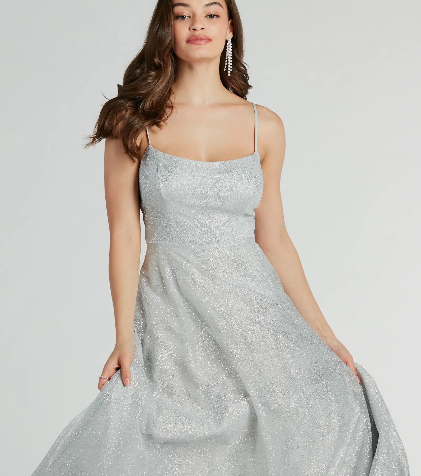 Kira Lace-Up Glitter Tulle A-Line Formal Dress