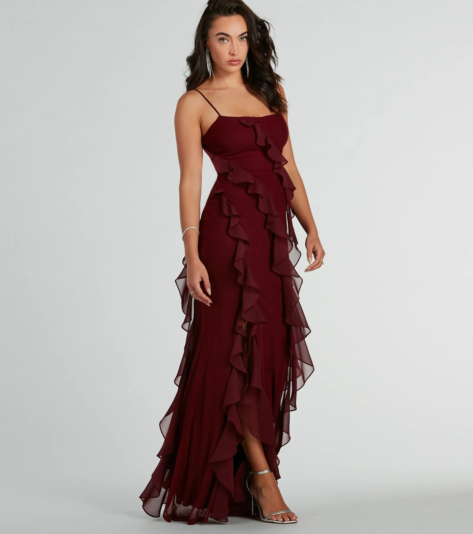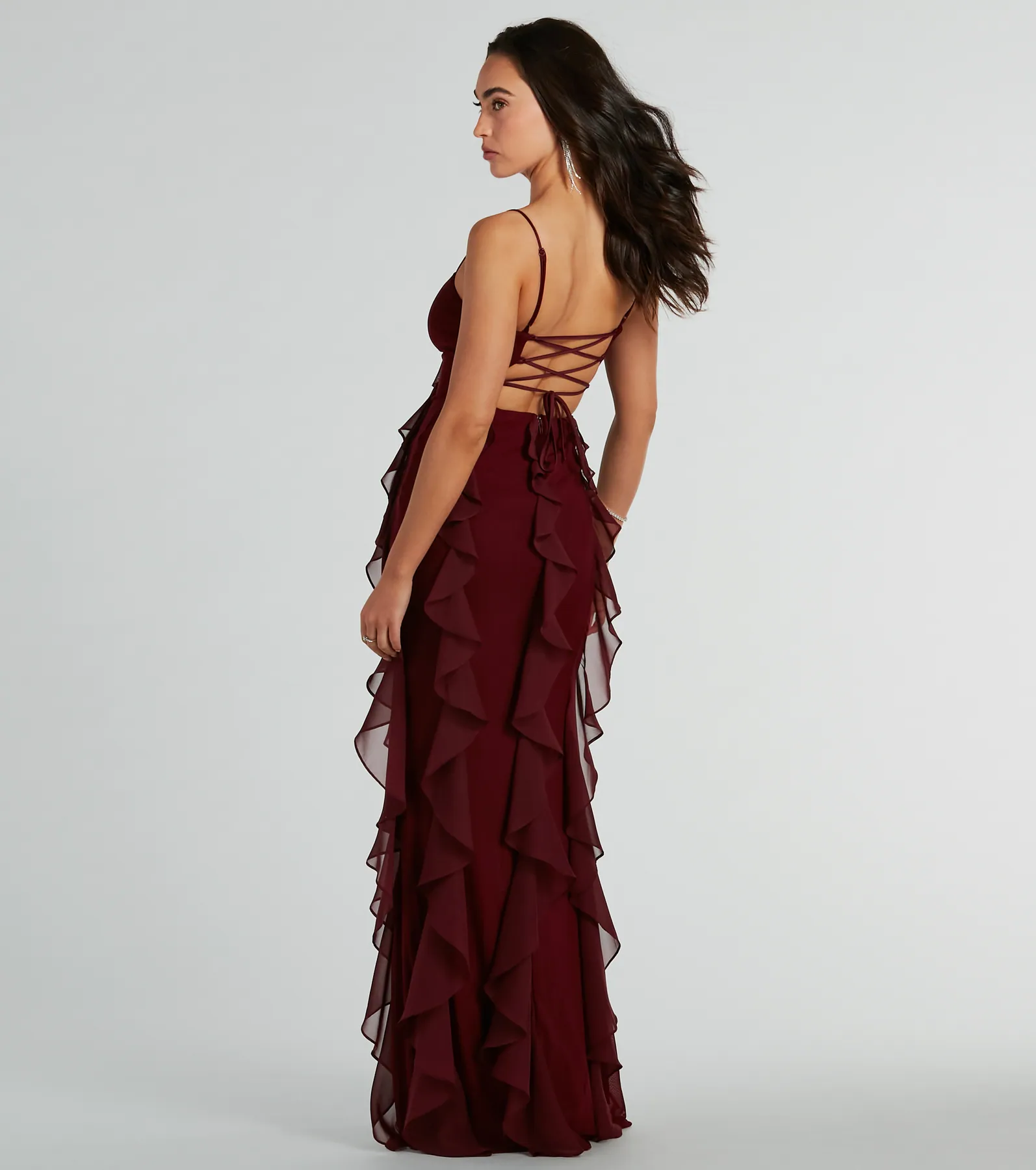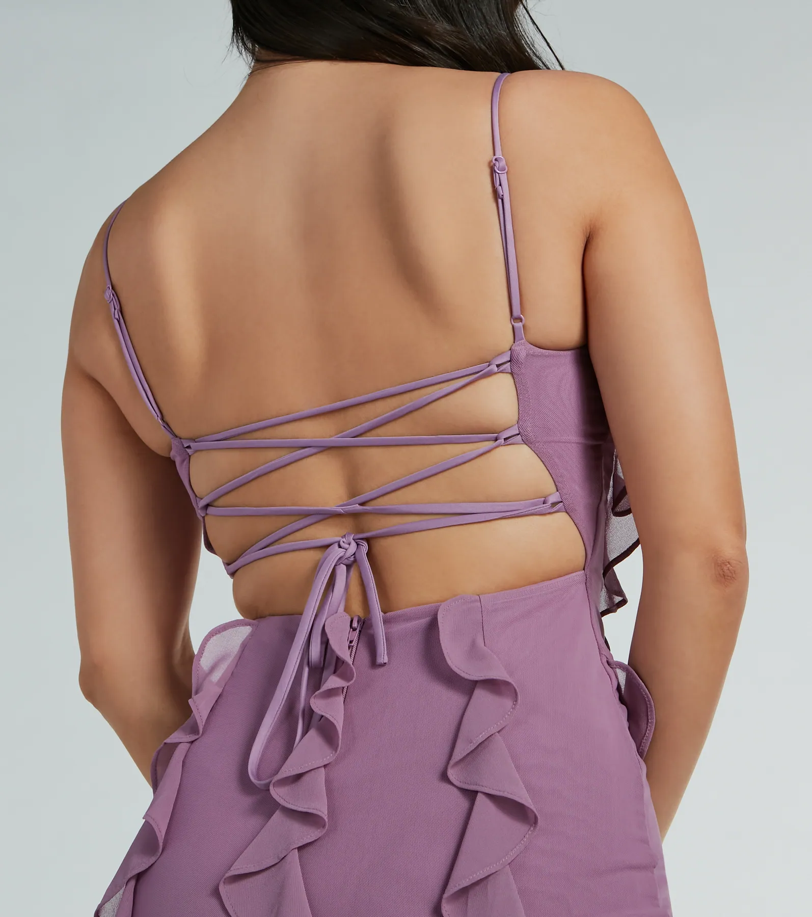 Sophia Lace-Up Ruffle Mermaid Mesh Formal Dress