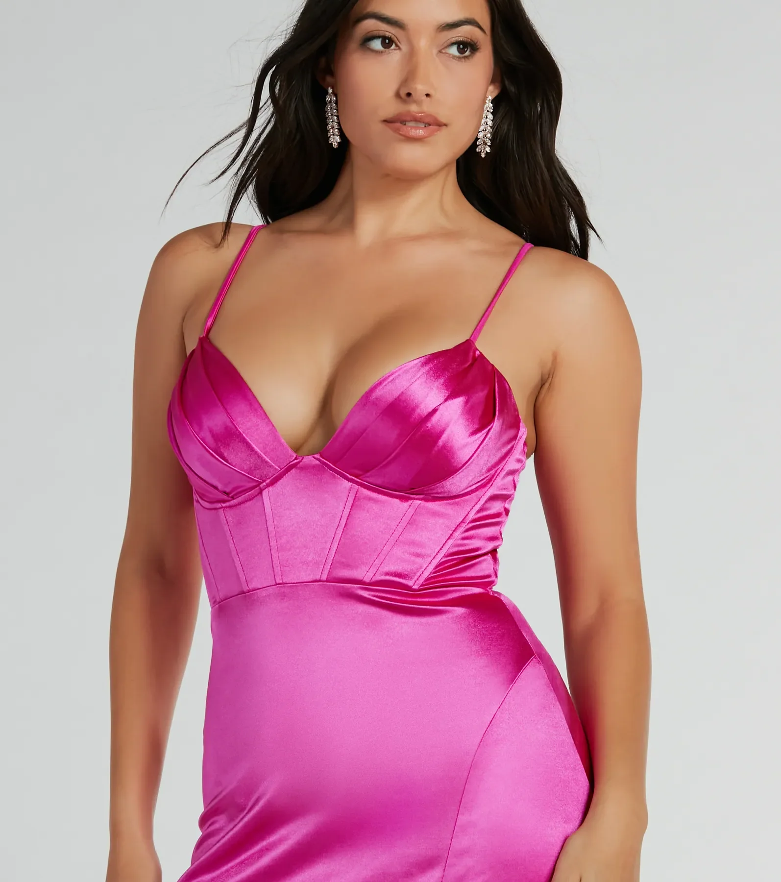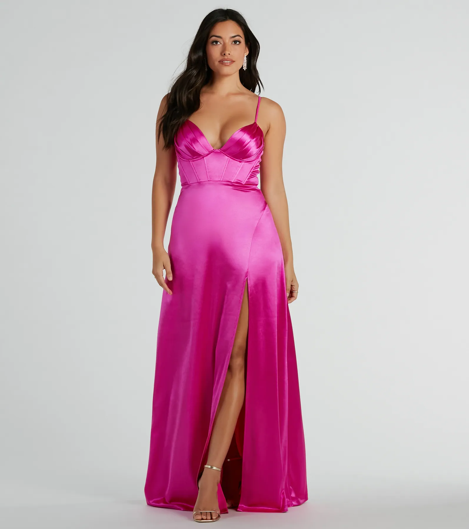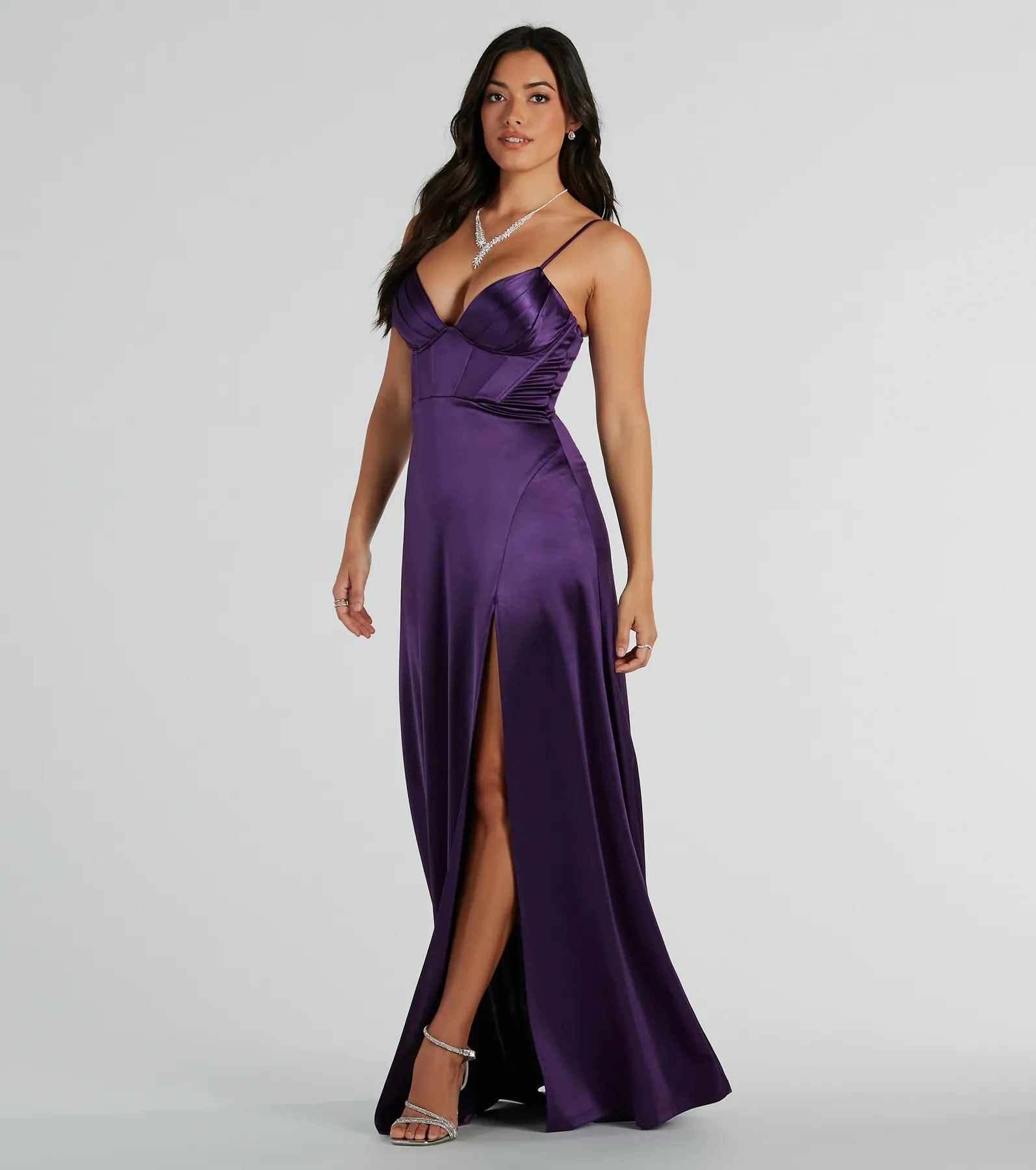 Haley Corset Slit A-Line Satin Formal Dress