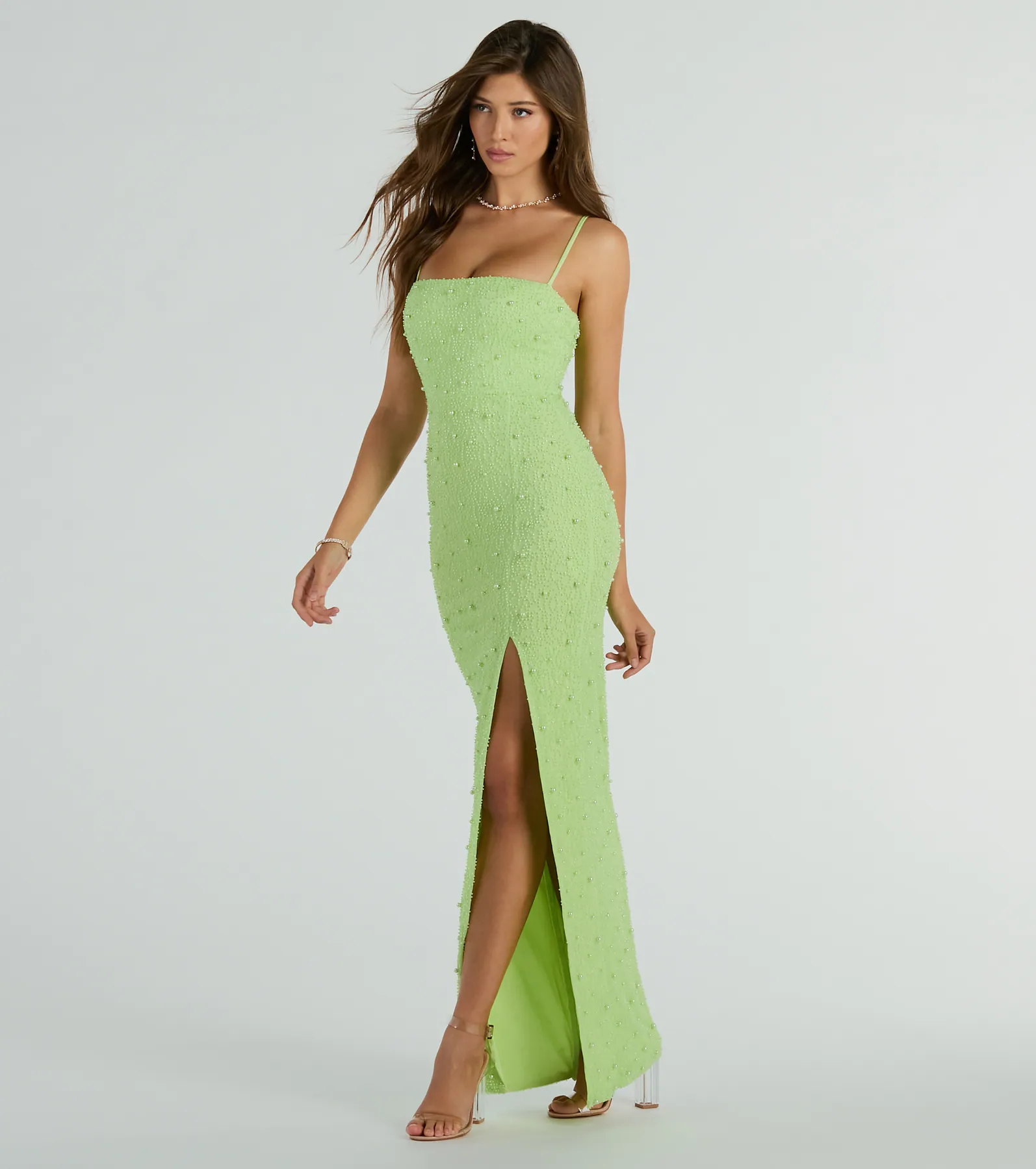 Valeria Square Neck Slim Faux Pearl Formal Dress