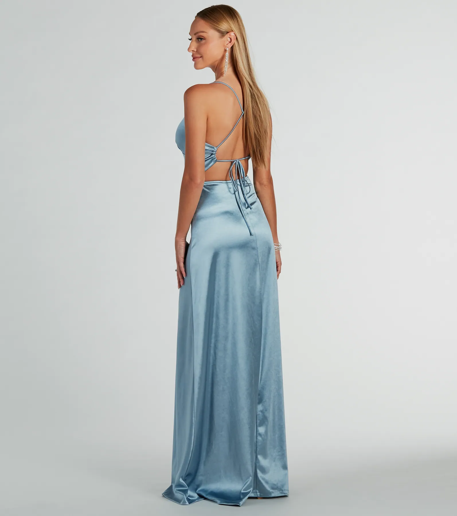 Laurel Lace-Up A-Line Slit Satin Formal Dress