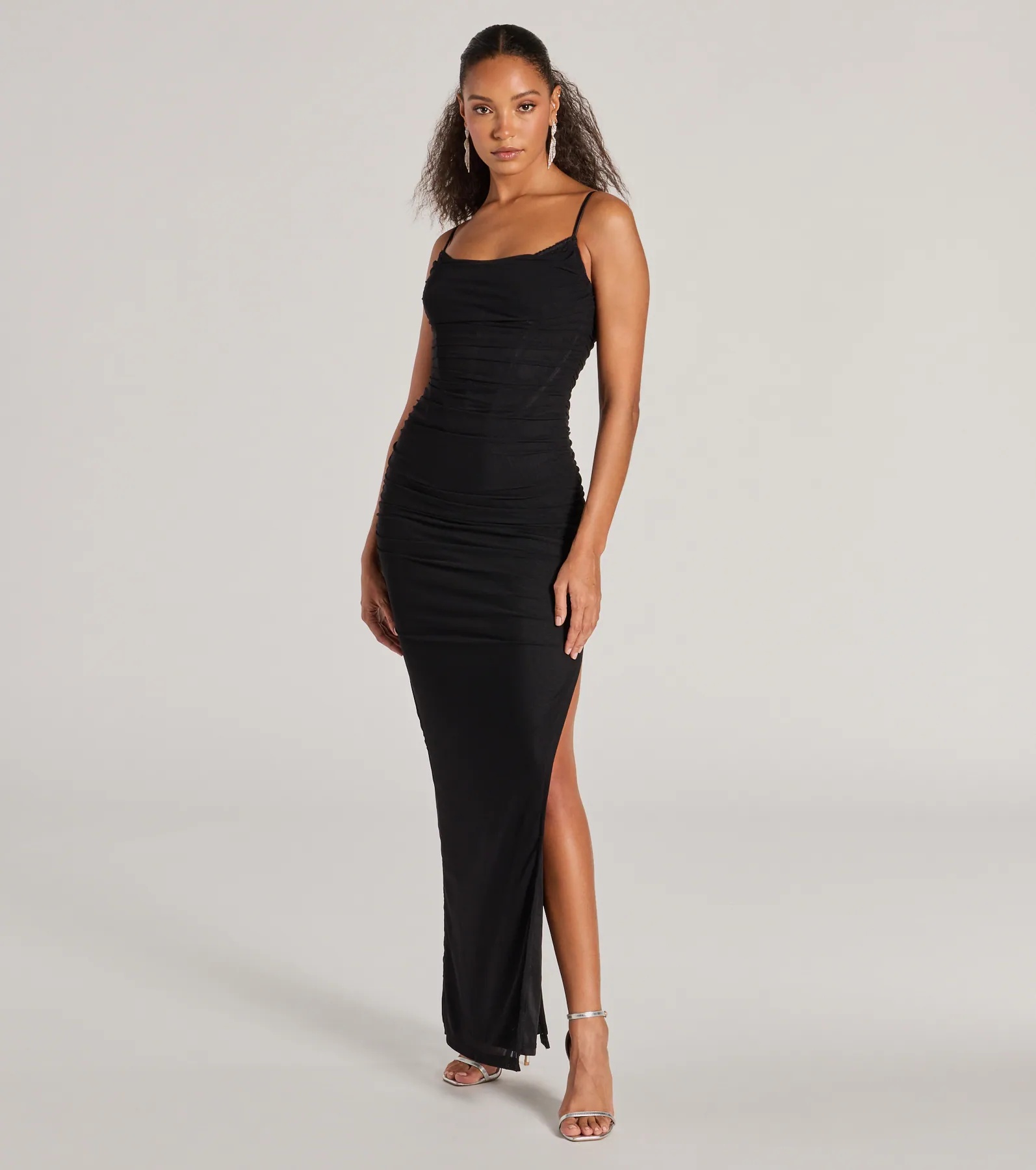 Gloria V-Neck Lace Corset Slim Mesh Formal Dress