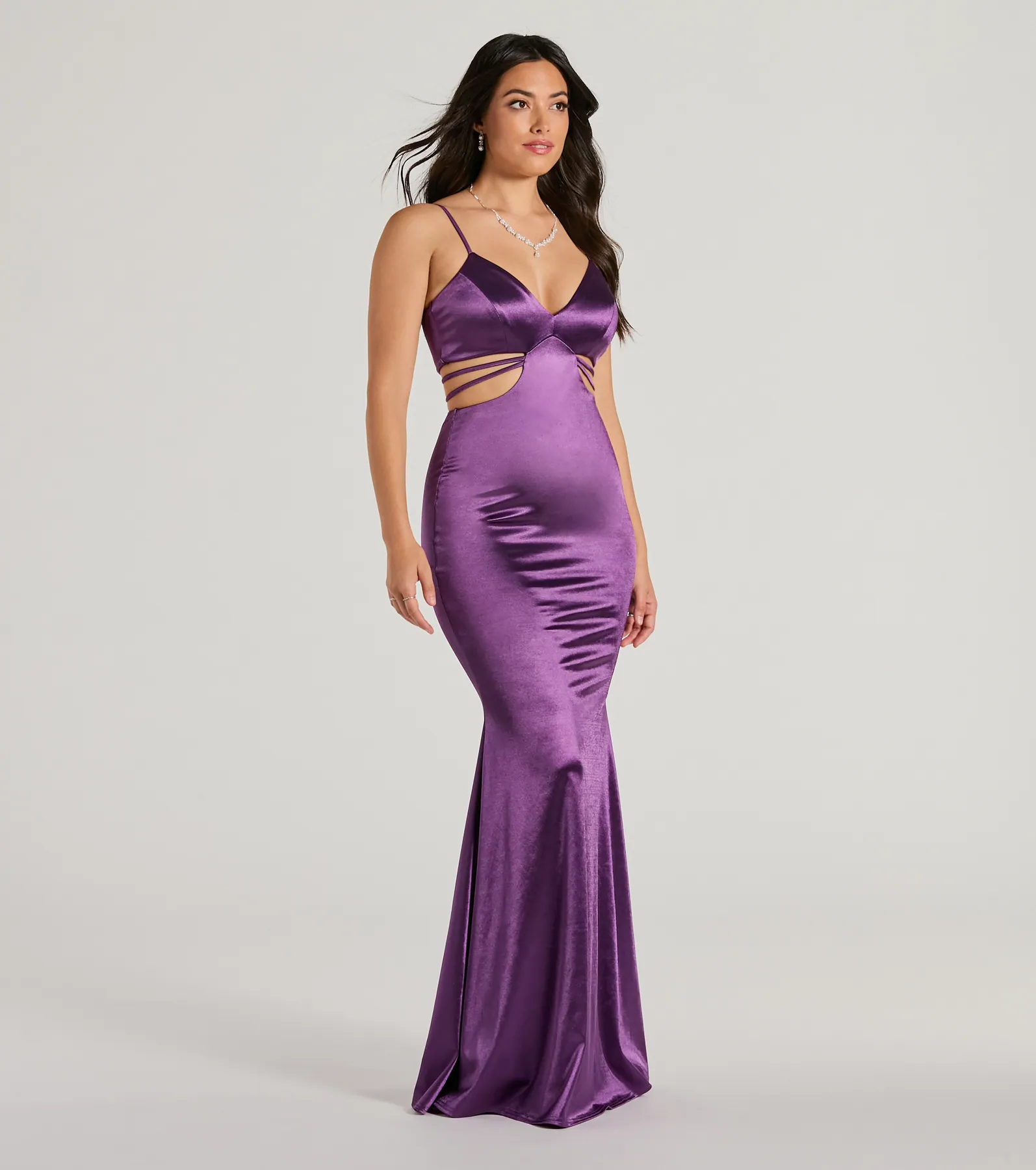 Pricilla V-Neck Strappy Mermaid Satin Formal Dress