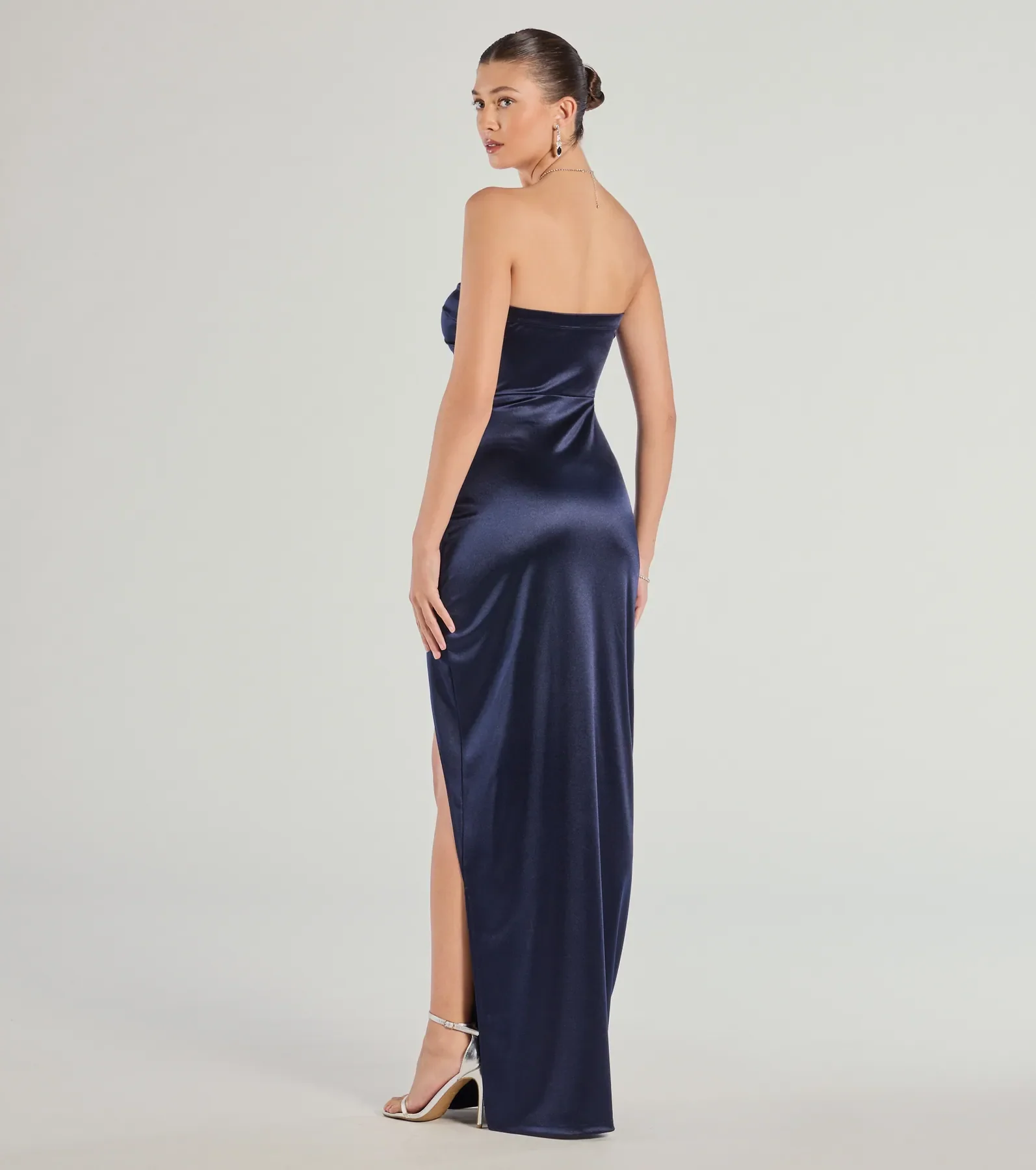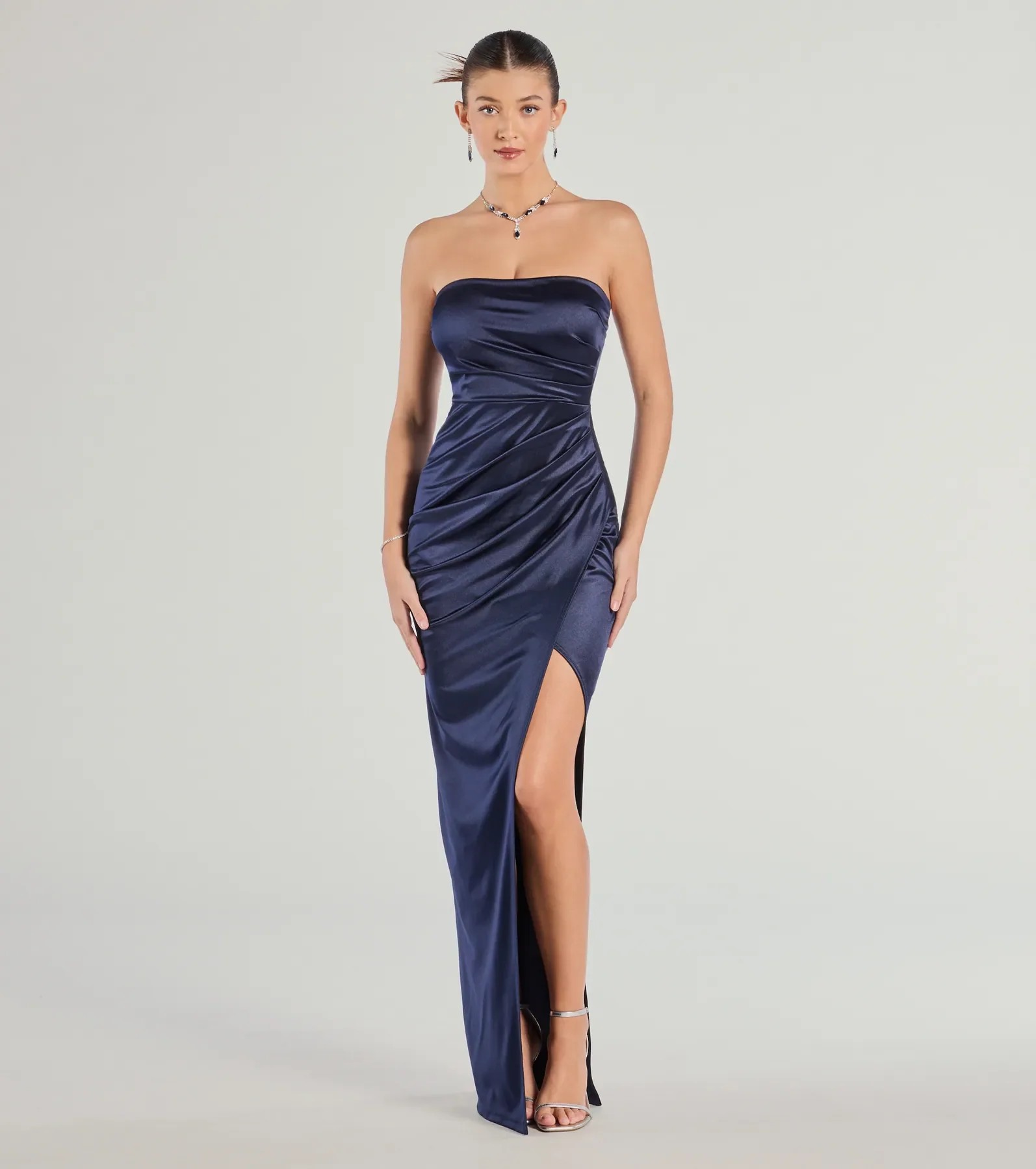 Lauren Strapless Wrap Slim Satin Formal Dress