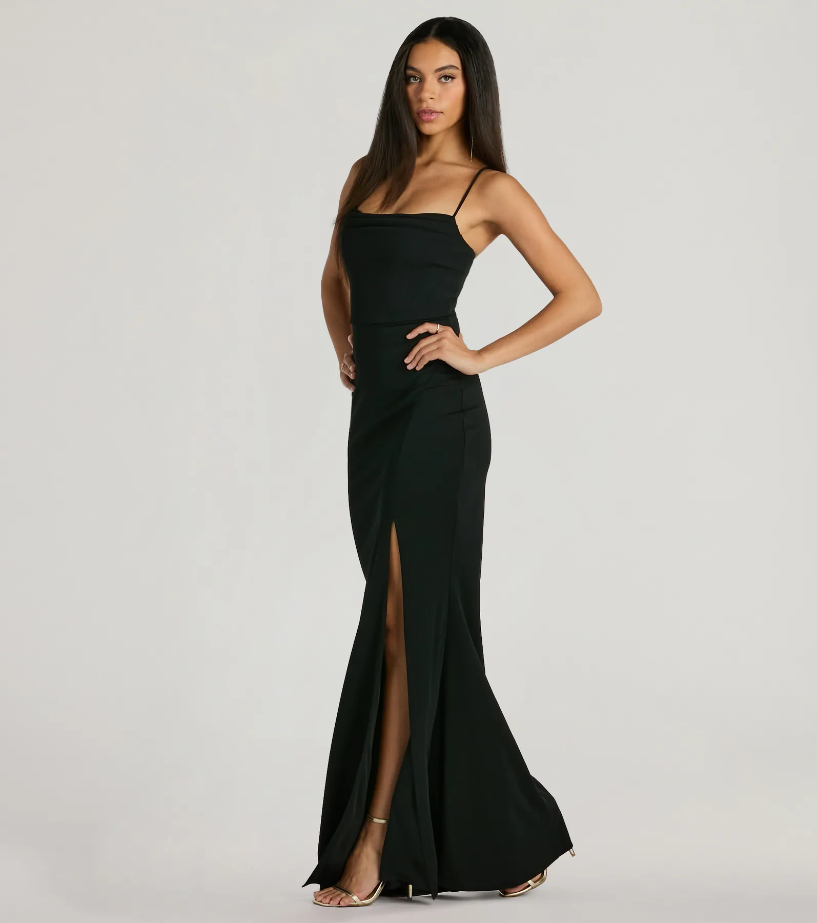 Alex Cowl Neck Slit Slim Crepe Formal Dress
