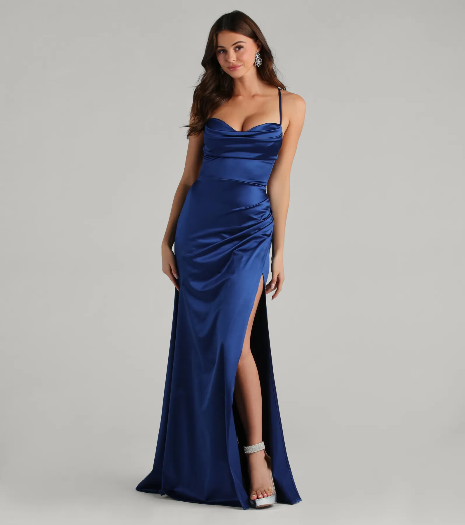 Melinda Satin Lace-Up Formal Dress