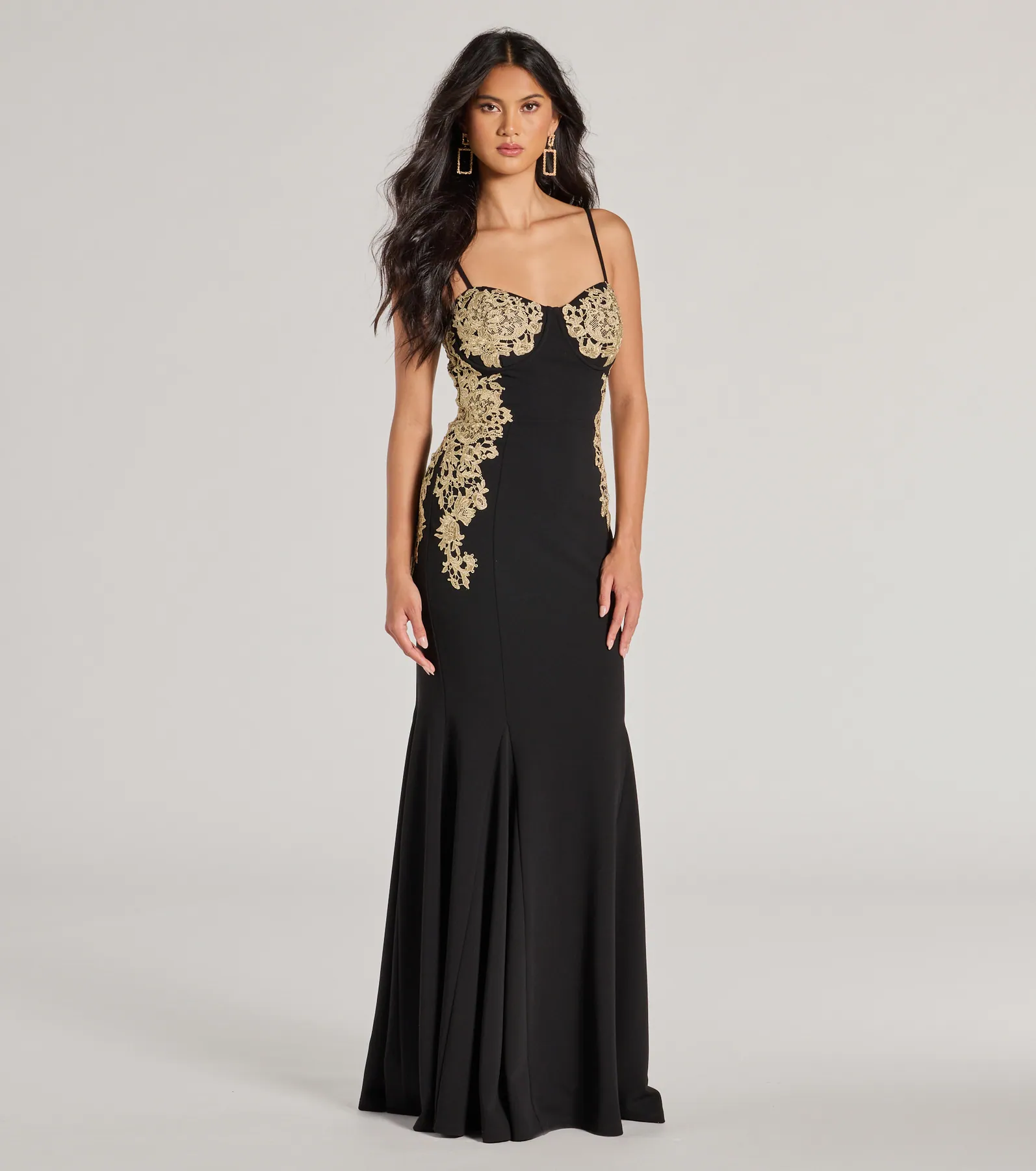 Susan Sweetheart Applique Crepe Mermaid Formal Dress