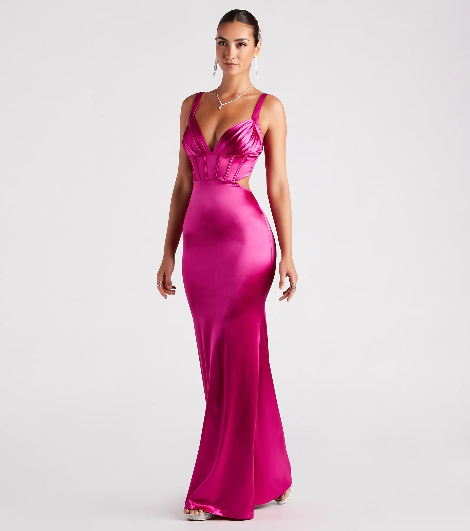 Ashtyn Glitter Satin High Slit A-Line Formal Dress