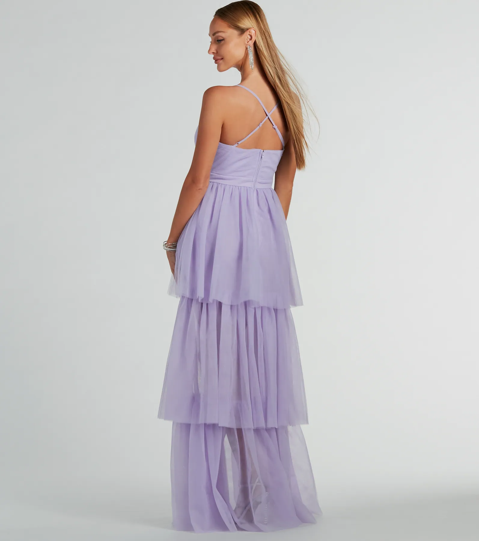 Ophelia V-Neck High Low Ruffle Tulle Formal Dress