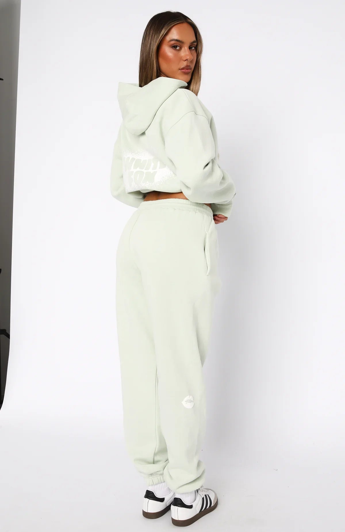You asked and we answered. All your cute and comfy dreams are coming true in the 11th Street Keeping It Real Sweatpants Iced Matcha. Features a high elasticated drawstring waistband, elasticated ankles, side pockets, soft fleece fabric for extra comfort and logo detailing on side of leg. You can complete the tracksuit with the matching 11th Street Keeping It Real Oversized Hoodie Iced Matcha for the full vibe.