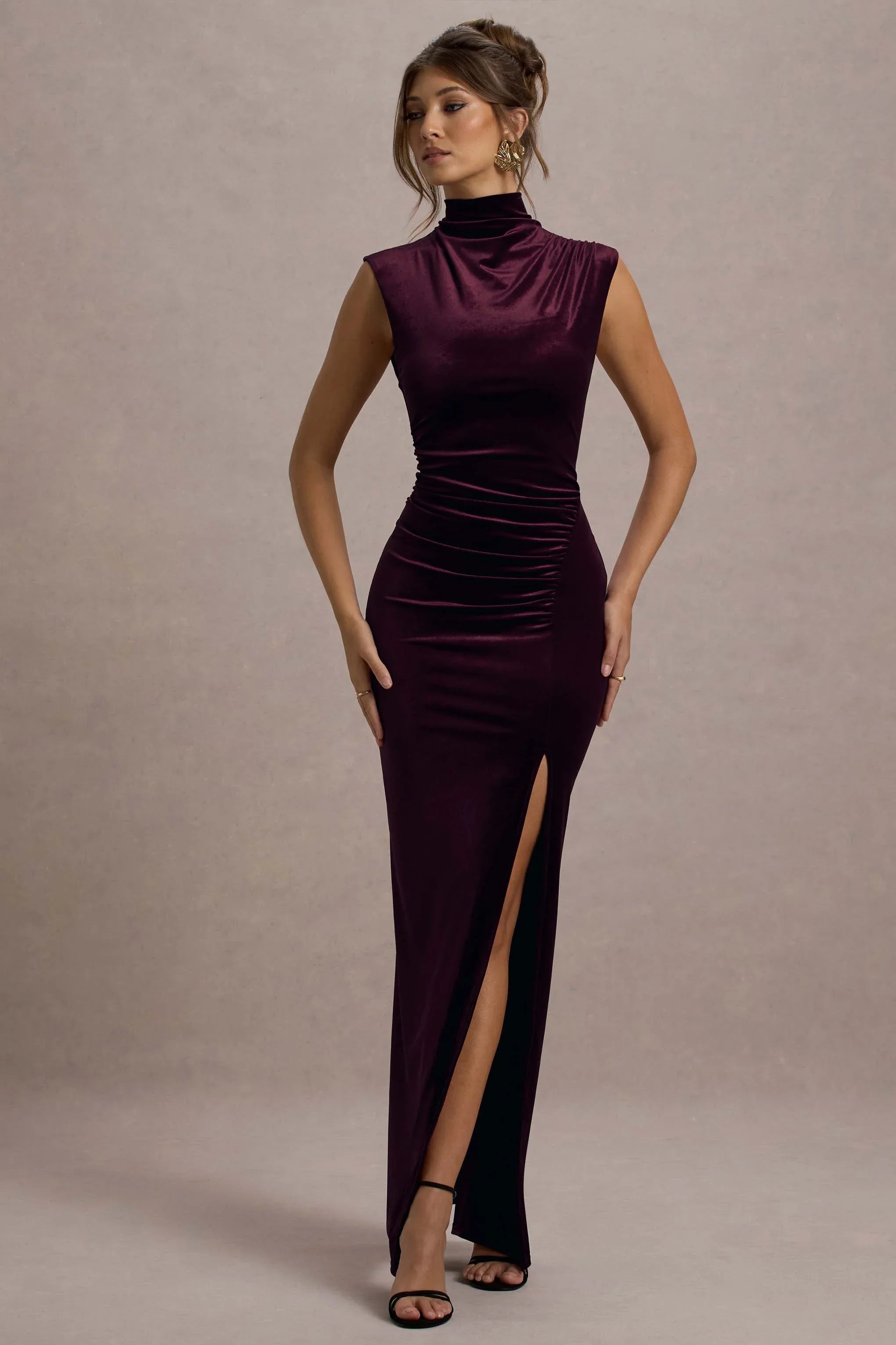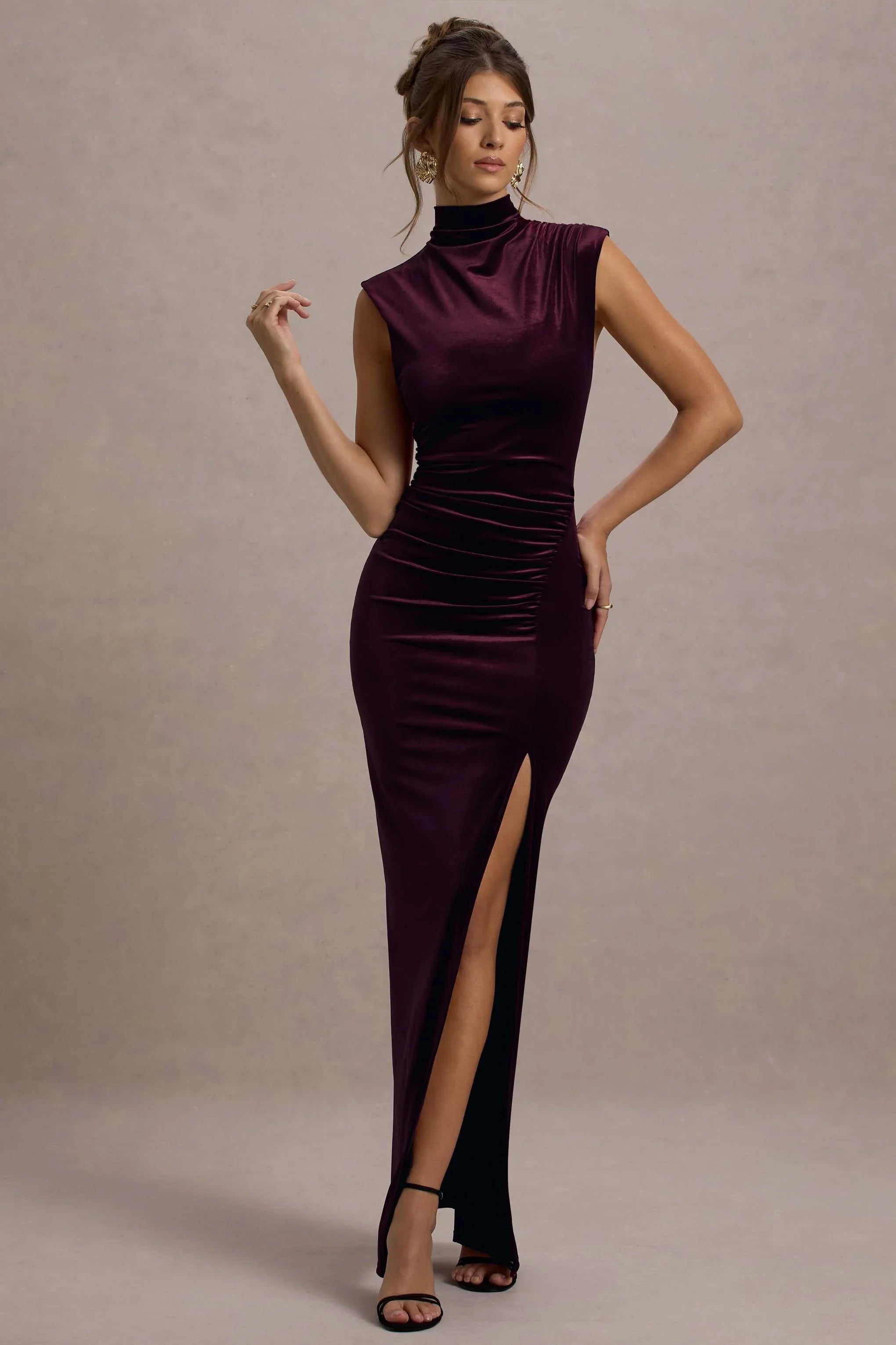 Defined by its luxurious fabric and striking silhouette, Abilene is a showstopping choice for your most glamorous occasions. Made from our premium port velvet, this high-neck maxi dress features a daring thigh-high split, effortlessly blending elegance with allure. The sumptuous velvet clings to your curves, while the sleek high neck adds a touch of sophistication. Keep Abilene at the forefront of your look by pairing it with metallic heels and sparkling statement earrings. Finish with a sleek updo and a bold lip to turn heads at your next event.