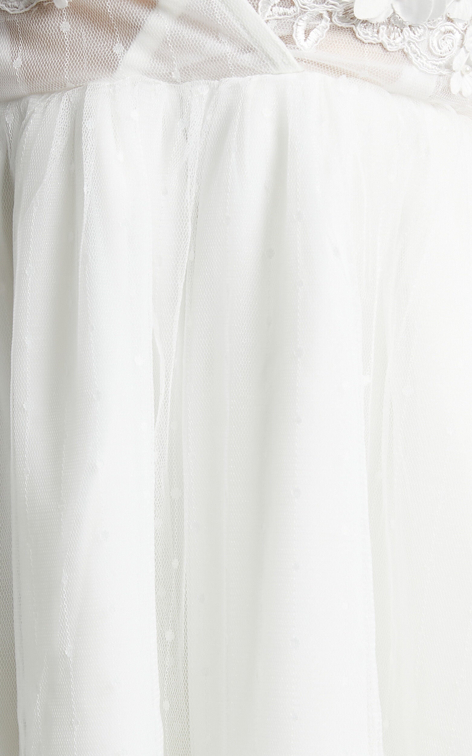 Who said wedding gowns had to be floor-sweeping? We sure didn't! For the brides who aren't a fan of floor-length dresses or just need a dance floor-ready dress to change into for the reception, our Akshia Dress is the one for you! This dreamy mini features a plunge neckline, faux wrap front bodice with floral appliqu��, short puff sleeves with ruffle cuffs and a floaty tulle skirt. It's sweet, elegant and so flattering, it'll have you dancing the day or night away - in style.Team it with Kodi Earrings in Gold/Pearl?for a classy touch!