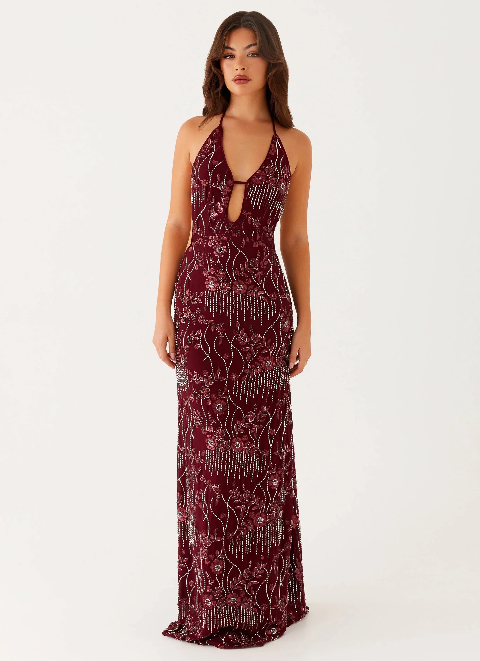 The All For Love Maxi Dress is a vision of elegance and allure. Featuring a V-neckline. a sultry open back. and fully lined for comfort. this dress moves with you effortlessly. Perfect for golden skies and balmy nights. it's made for unforgettable moments that shine from sunset to sundown.